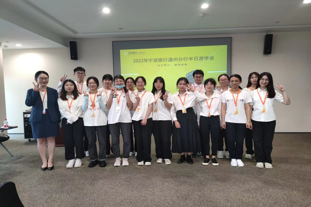 6月15日下午,温州大学商学院19财务管理2班共15位学生在大学生职业生涯规划与就业指导课任课老师唐华的带领下来到宁波银行温州分行进行为期半天的职业体验。本次体验活动旨在通过“小体验”去触发自己的“大未来”,让大家近距离了解银行的业务和感受银行的整体氛围。
