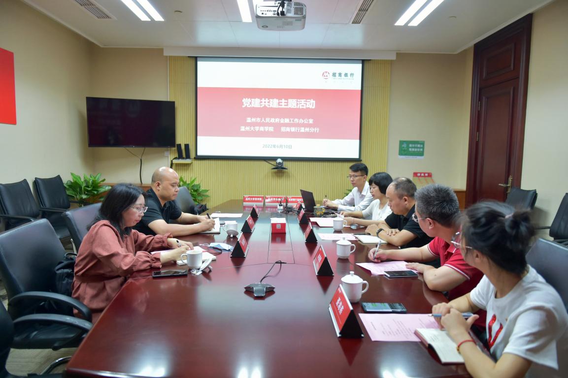 温州大学商学院党委自2017年启动“银校共建”党建品牌项目以来,一直积极推进校企、校地共建合作,持续深化建设浙江省金融教育基地,该项工作得到了市金融办与招商银行温州分行的高度认可。后续,学院将持续联动学院各支部尤其是金融系支部,进一步强化与银行等金融机构单位的合作关系,助推学院党建工作提质增效。