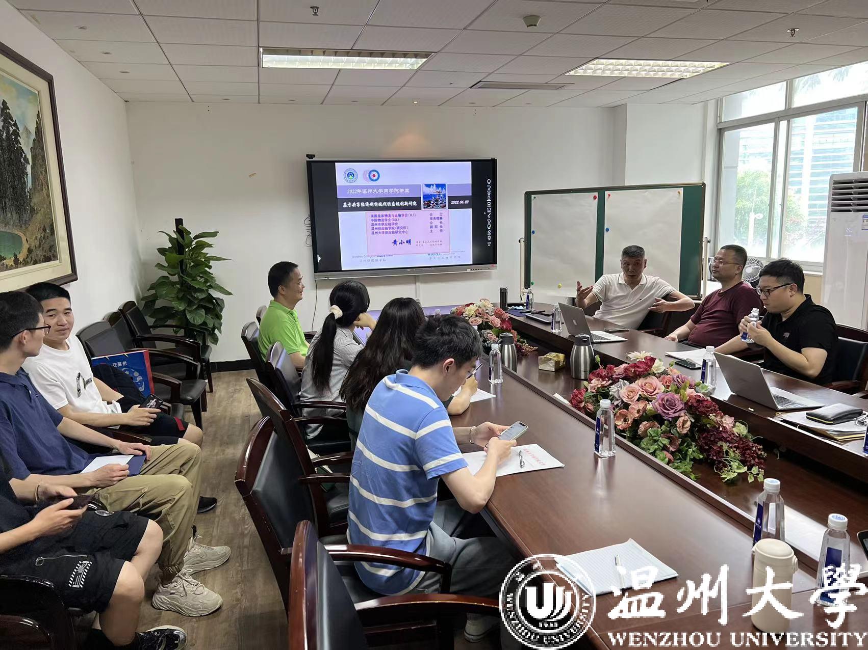 2022年6月22日下午,商学院工商系于商学楼A222举办第四期教科研系列讲座,会上邀请了温州市供应链学会会长、温州大学供应链研究中心主任黄小明博士同商学院教师、研究生进行学术分享活动。