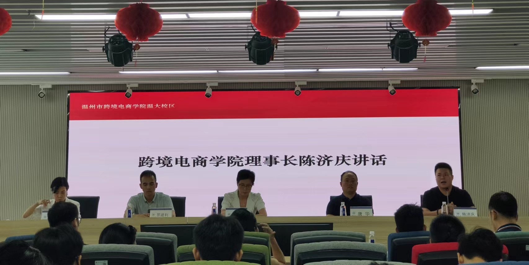 7月1日上午9点,温州大学跨境电商学院首期实操班开班仪式在温州大学商学院仲辉商道讲堂隆重举行。温州大学教务处处长罗建利、温州大学商学院党委书记郑彩莲、温州大学商学院党委副书记唐华、温州大学跨境电商学院理事长、温州康晶光学有限公司董事长陈济庆以及实操班部分导师和全体学员出席开班仪式。仪式由温州大学跨境电商学院院长林俐教授主持。