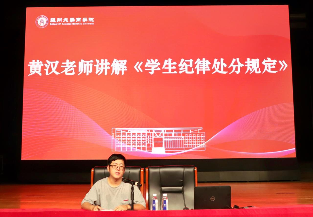 为全面贯彻党的教育方针,落实立德树人根本任务,维护学校正常的教育教学秩序和生活秩序,按照《温州大学2022级新生入学教育方案》相关要求,商学院于9月14日晚邀请温州大学图书馆董芳菲老师,为新生开展了题为《2022级新生入馆教育》的讲座。同时,辅导员秦哲和黄汉两位老师分别为2022级新生解读《2022级学生手册》。