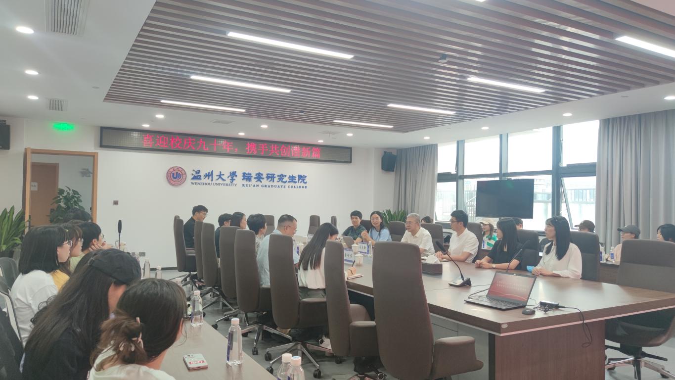 9月26日下午,温州大学商学院师生一行前往温州大学瑞安研究生院交流学习。学院党委书记李密、副院长余向前、副院长陈文芝、院长助理方嘉奇、辅导员王景欣以及25名研究生代表参加此次活动。
