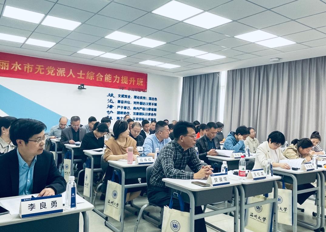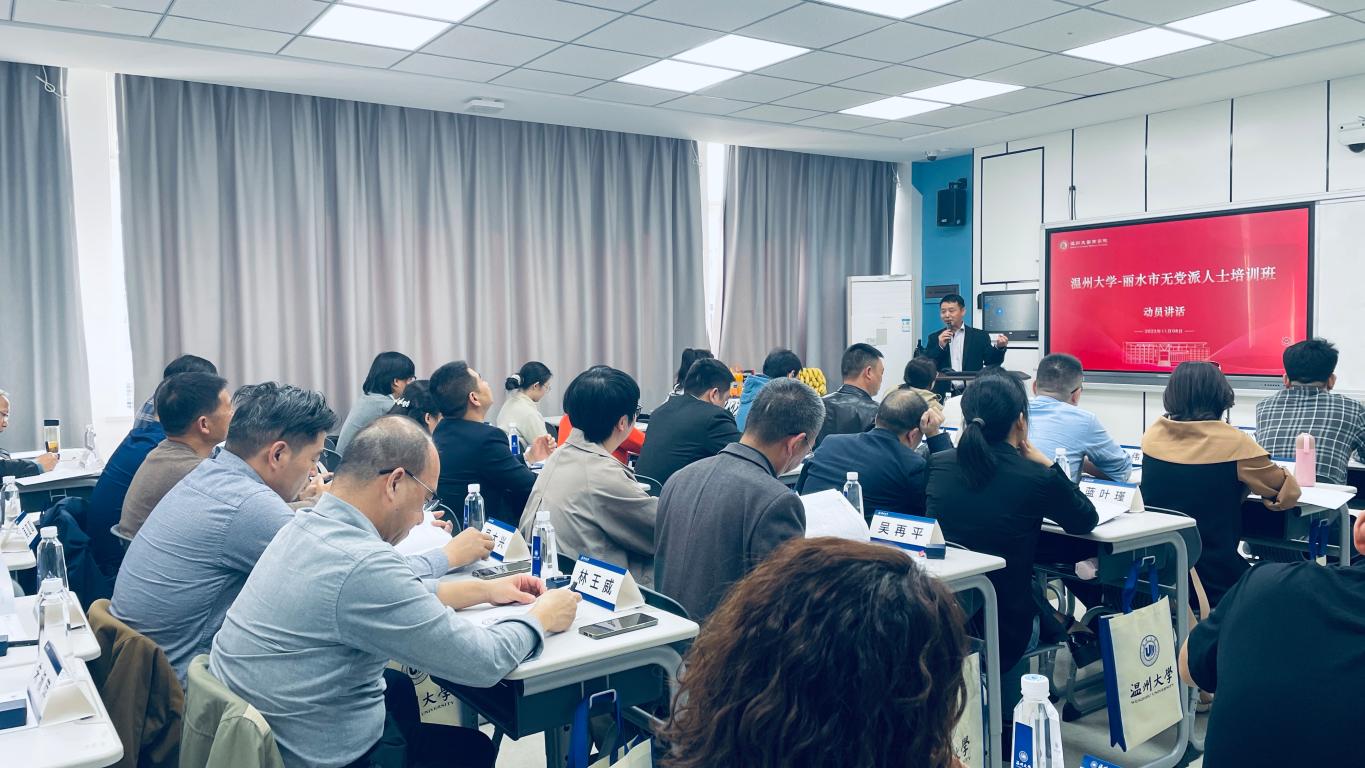 2022年11月8日—11日,由温州大学商学院主办的丽水市无党派人士培训班在温州大学北校区北2-405教室顺利举行。培训为期3.5天,丽水市无党派人士共计35余人参加了此次培训。内容包括无党派人士综合素养提升、基本理论与政治制度、市情研究与建言咨政、二十大工作报告解读等。培训结合专题讲座、课堂授课、实践参观、互动交流等形式。