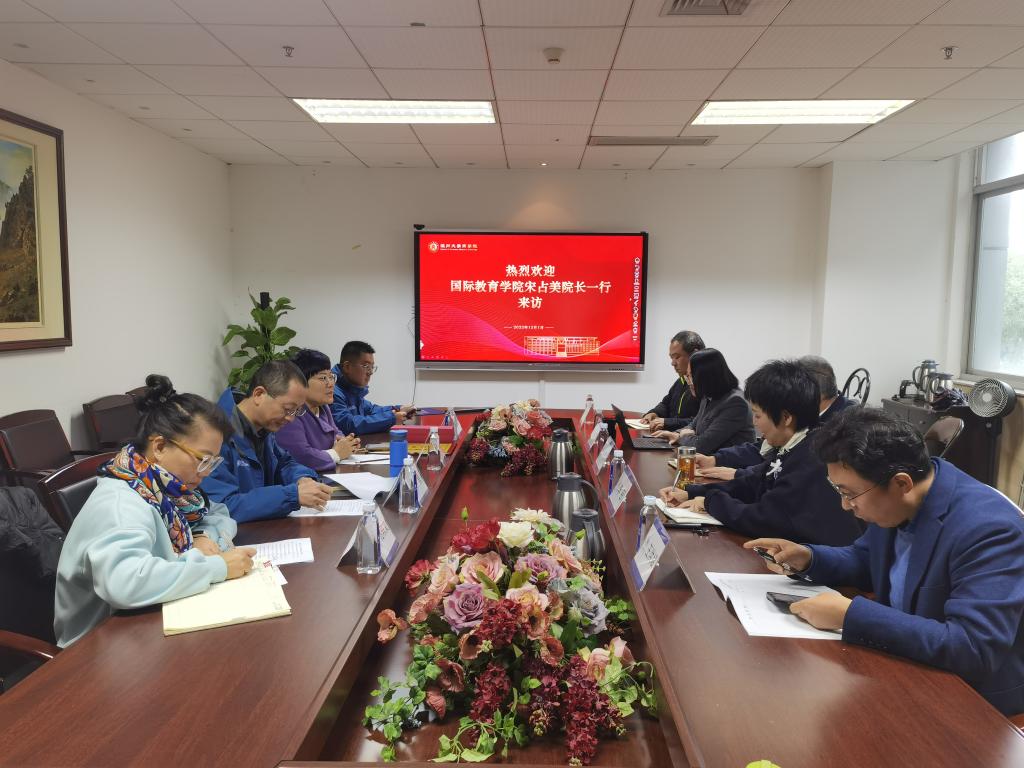 2022年12月1日上午,国际教育学院院长宋占美、副院长熊勇、招生科科长吴铨铨等一行来商学院调研,就国际化招生、人才培养等事宜展开交流,与会人员在商学院A222会议室齐聚一堂。