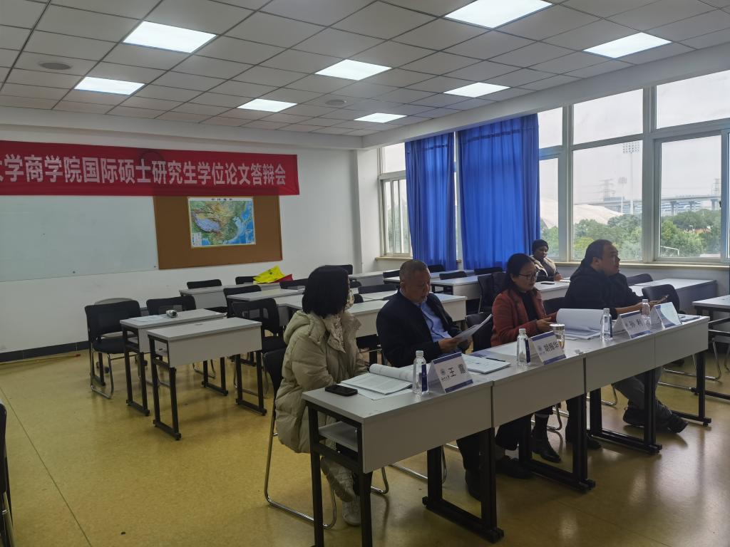 2022年12月7日上午,温州大学商学院秋季国际硕士研究生学位论文答辩在北校区三号楼308教室如期举行。参加本次答辩的国际生共3人,分别来自利比里亚和津巴布韦,均为应用经济学专业研究生,其中1名学生为学位论文答辩,另2名学生为学位论文预答辩。答辩委员会主席由温州理工学院外国语学院院长孙利教授担任,答辩委员会成员由温州大学商学院院长胡振华教授、徐正副教授、王露副教授等老师组成。