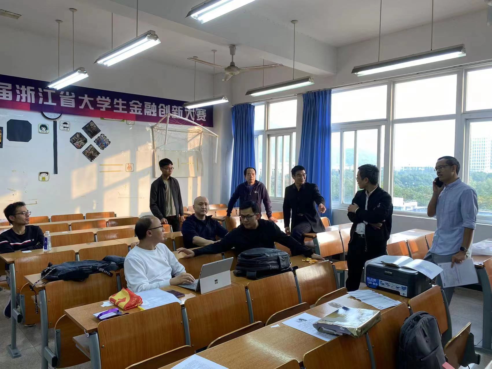 为了使11月27日“杭州银行杯”第七届浙江省大学生金融创新大赛在温州大学顺利举行,11月26日,商学院金融工程系教师到现场就各个环节进行了检查与推演,商学院院长胡振华和系主任林德根一早就到现场进行了考察,保障活动的顺利开展。