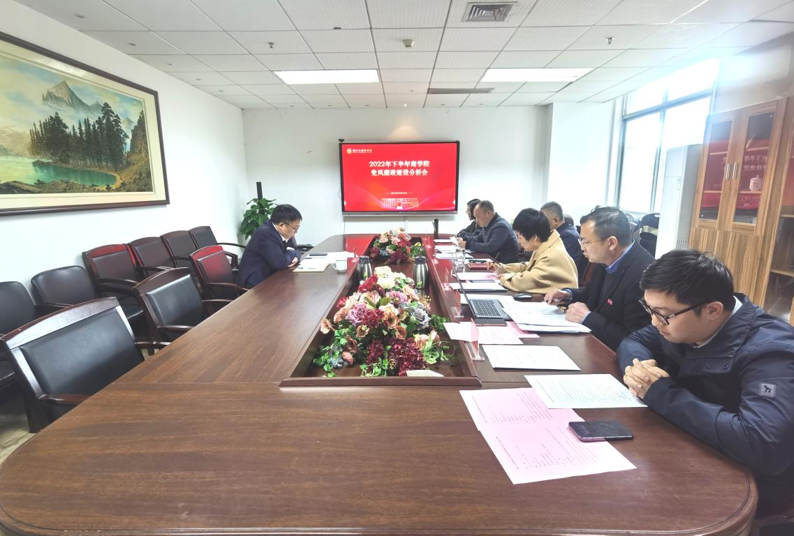 为深入贯彻党的二十大精神,推进全面从严治党向纵深发展,切实落实党风廉政建设责任制,强化学院党委主体责任、纪委监督责任和班子成员“一岗双责”,根据校党委《温州大学关于在二级单位实行领导班子党风廉政建设情况分析会制度的通知》精神,我院党委于2023年2月23日在A222会议室召开了2022年下半年党风廉政分析会,分析会由商学院党委书记李密主持,校长赵敏、商学院院长胡振华、副书记兼纪委书记唐华、副院长余向前、陈文芝等出席,教师代表方嘉奇列席了分析会。