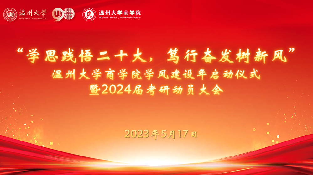 5月17日下午,温州大学商学院“学思践悟二十大,笃行奋发树新风”学风建设年启动仪式暨2024届考研动员大会在院会议室A226隆重举行。商学院党委副书记唐华、院长助理方嘉奇、各系主任、辅导员出席此次活动。活动由学生科科长周洁文主持。