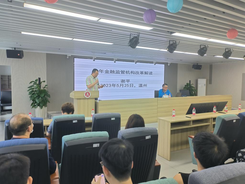 5月25日上午,由温州市金融研究院、温州大学金融研究院、温州大学商学院联合举办的《今年金融监管机构改革解读》讲座在温州大学北校区商学院A226商道讲坛举行。清华大学五道口金融学院教授、博士生导师,原中国人民银行金融稳定局局长、中央汇金投资有限责任公司首任总经理、中国投资有限公司副总经理、温州市金融研究院首任院长谢平教授作报告。