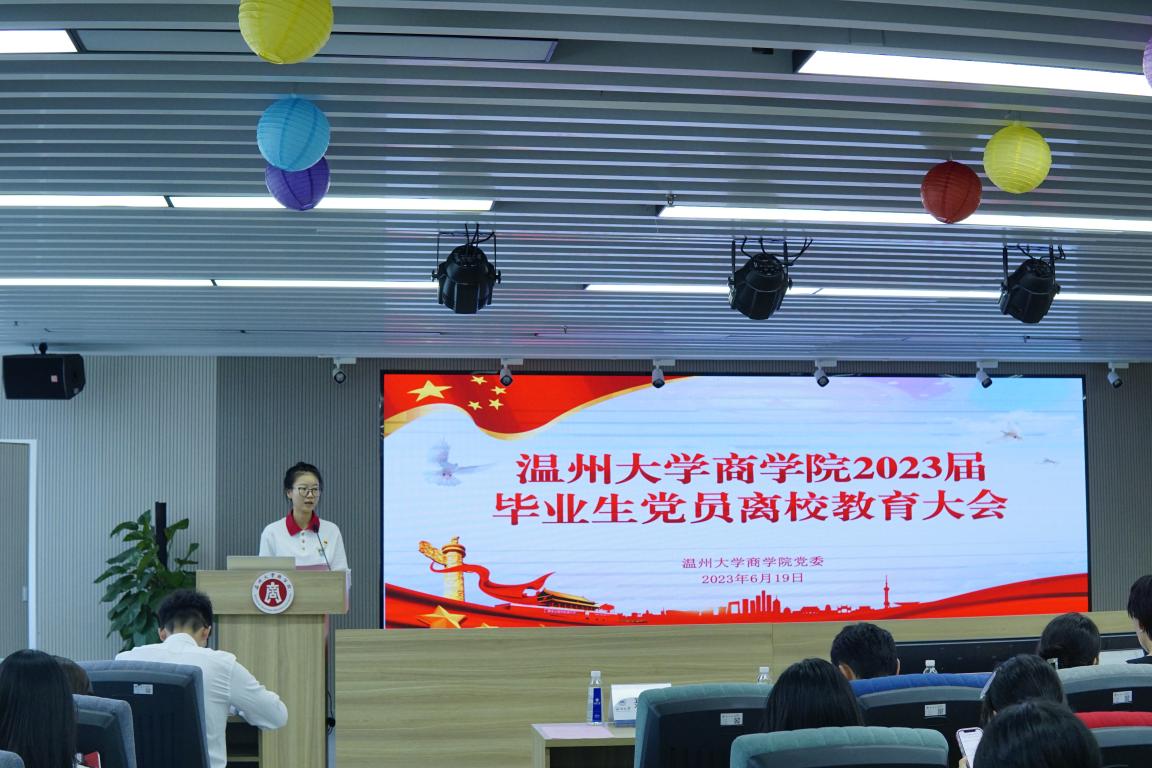 2023年6月19日下午14时,温州大学商学院2023届毕业生党员离校教育大会在商学院A226会议室顺利举行。学院党委书记李密、学生科科长周洁文、学生党建负责人聂海燕、各学生支部书记、支部助理以及毕业生党员参加了此次会议。大会由聂海燕老师主持。