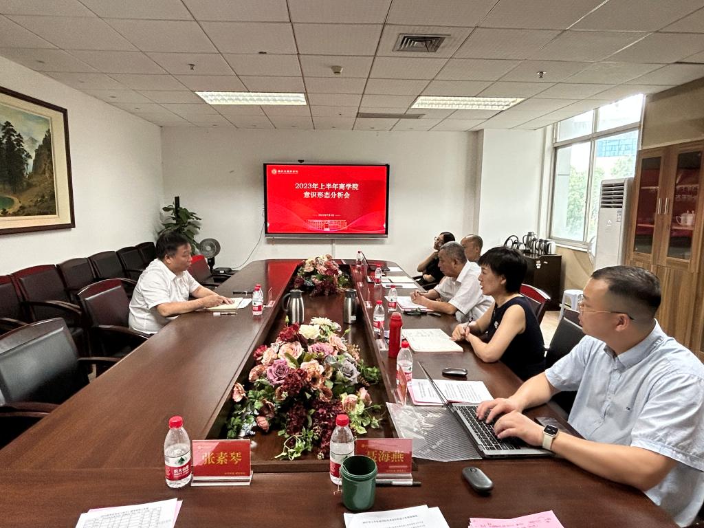 为了更好地贯彻落实“党要管党、从严治党”政治责任,深入推动意识形态工作与教学、科研、管理等各项工作相融合和《温州大学意识形态工作责任制实施办法》的要求,加强和改进党对意识形态工作的领导,我院党委于2023年7月4日下午召开2023年上半年意识形态工作分析会,分析会由党委书记李密主持,院长胡振华、副书记唐华、副院长余向前、陈文芝等出席,教师代表纪委委员张素琴列席了分析会,温州大学校长赵敏全程参加指导会议。