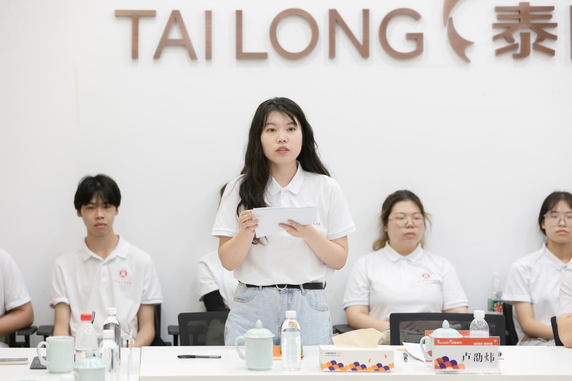 接着,泰隆银行温州分行副行长蒋丽英发表讲话。她再次肯定了实践队指导老师夏怡然讲话中新生代青年坚韧的品格,指出此次实践也是再次见证了温州大学师生情系社会,服务民生的宝贵精神。她也向老师同学们介绍了泰隆银行的基本情况以及近几年来取得的成就,分享了泰隆银行优质的服务,并对温州大学此次暑期社会实践表示支持与感谢。