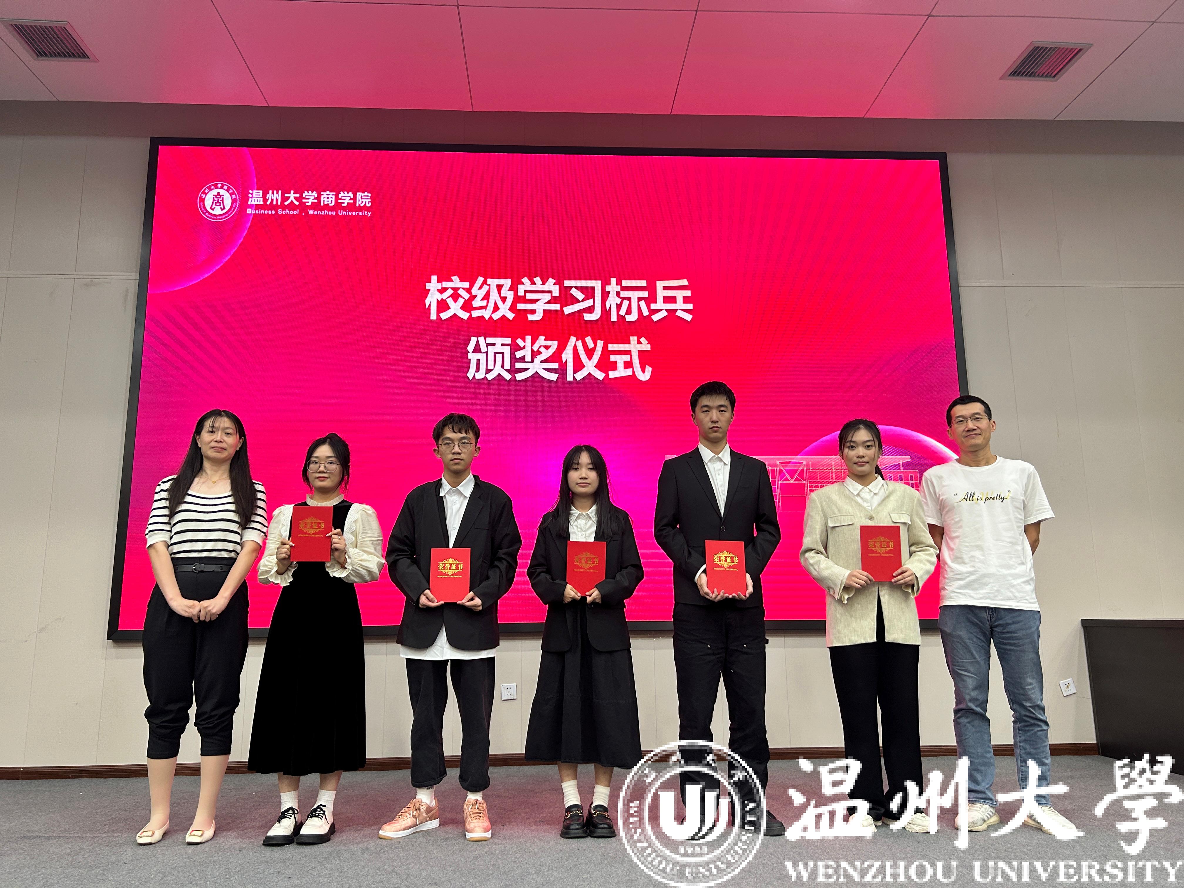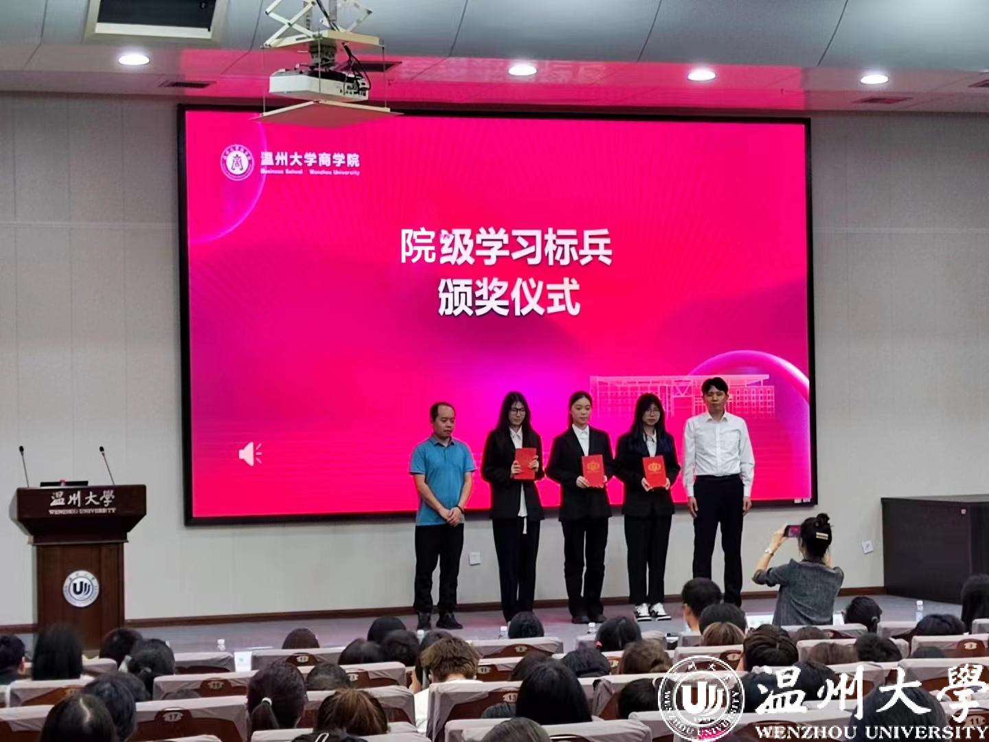 经过激烈角逐,20工商班和21金融工程1班获得校级“优良学风班”荣誉;兰佳慧、齐雨、练洛川、赵金灿、叶岑诗5位同学荣获校级“学习标兵”称号,任书梵、潘宝仪、郑佳宁3人荣获院级“学习标兵”称号。评委老师为获奖班级、学生颁奖。