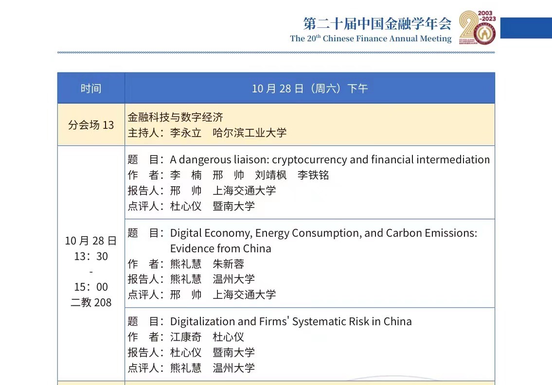 我院熊礼慧老师受邀出席年会,并在分论坛上汇报了论文《Digital Economy, Energy Consumption and Carbon Emissions Evidence from China》。
