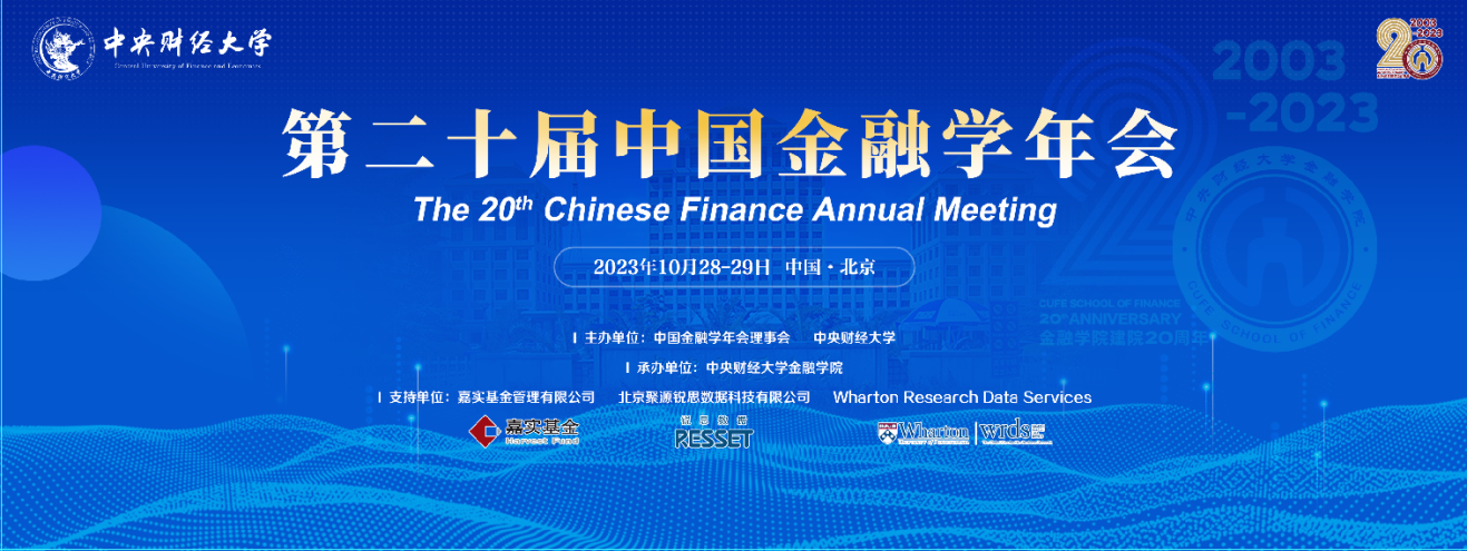 2023年10月28日至10月29日,由中央财经大学和中国金融学年会理事会联合主办、中央财经大学金融学院承办、嘉实基金管理有限公司、北京聚源锐思数据科技有限公司和WRDS沃顿数据平台共同支持的第二十届中国金融学年会在北京顺利召开。本届年会秉承中国金融学年会的一贯宗旨,搭建立足中国、面向世界的开放互动交流平台,汇聚国内外金融学届同仁,围绕中国金融发展中的重大问题、共聚共研,积极推进中国金融领域的前沿研究,推高中国学术研究在世界范围内的声誉和地位。