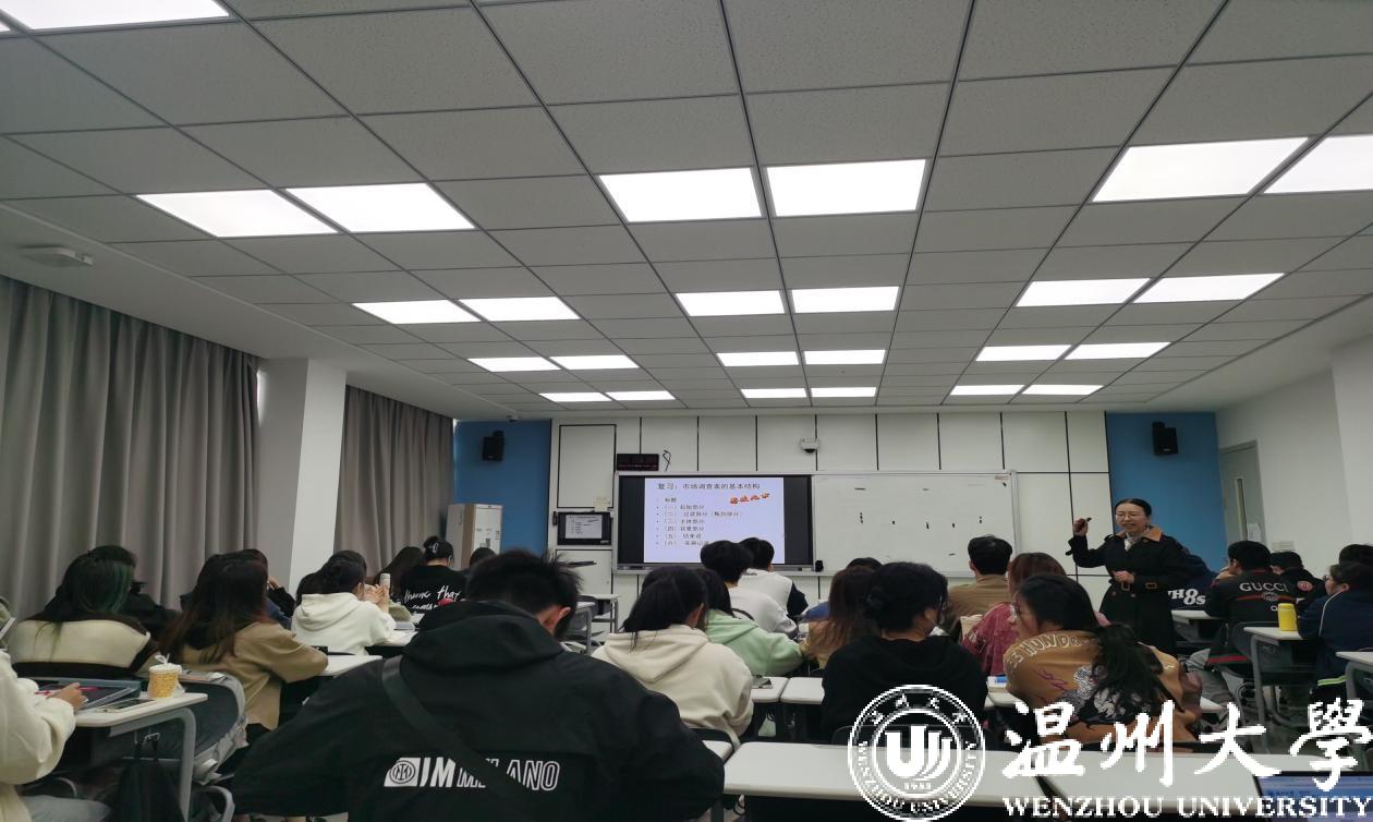 孙雷红老师讲授的课程《市场调查与预测》是学校的思政示范课程。她在复习讲授“市场调查表的基本结构和设计方法”中,重申市场调查表的基本结构,是按照人对客观事物认知顺序得出的,市场调查表的设计方法是按照人的思维逻辑来设计的。设计调查表能培养人们严谨的科学态度和求实的科学作风。