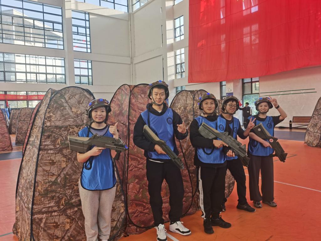 团体项目,我院教职工同心协力,驰骋赛场,在真人CS决赛中获得第二名,夹乒乓球项目比赛中获得第二名的好成绩。