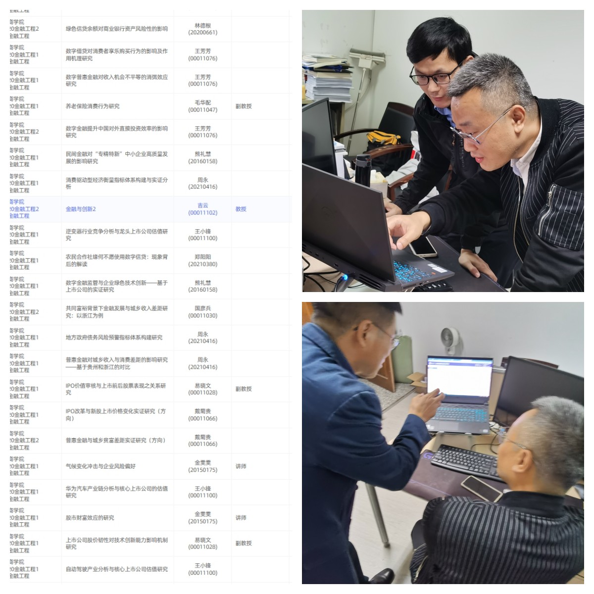 2023年11月28日下午16点,金融工程专业负责人胡振华(线上指导)、金融工程系主任林德根、系副主任李永盛、金融工程系毛华配副教授组成了选题审核小组,在商学院A407-5办公室对所有2024届毕业生的选题进行审核。