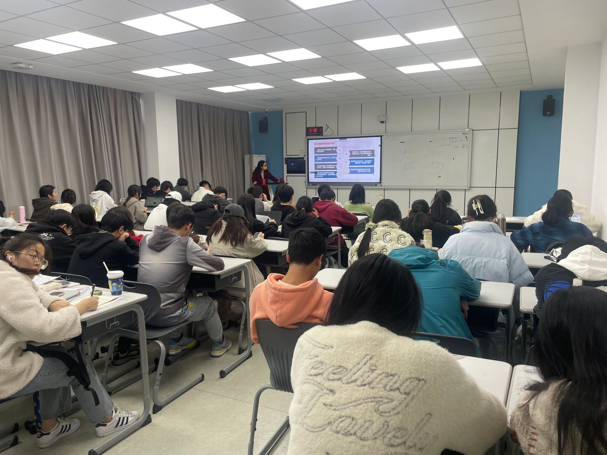 讲座最后,朱老师语重心长地嘱咐大家,“对于自己未来的生涯规划不仅要注重路径的选择,更要将其与实际生活和自身的人生目标紧密结合,明晰自我发展的道路,在实践中不断总结和完善自己的职业生涯规划”。