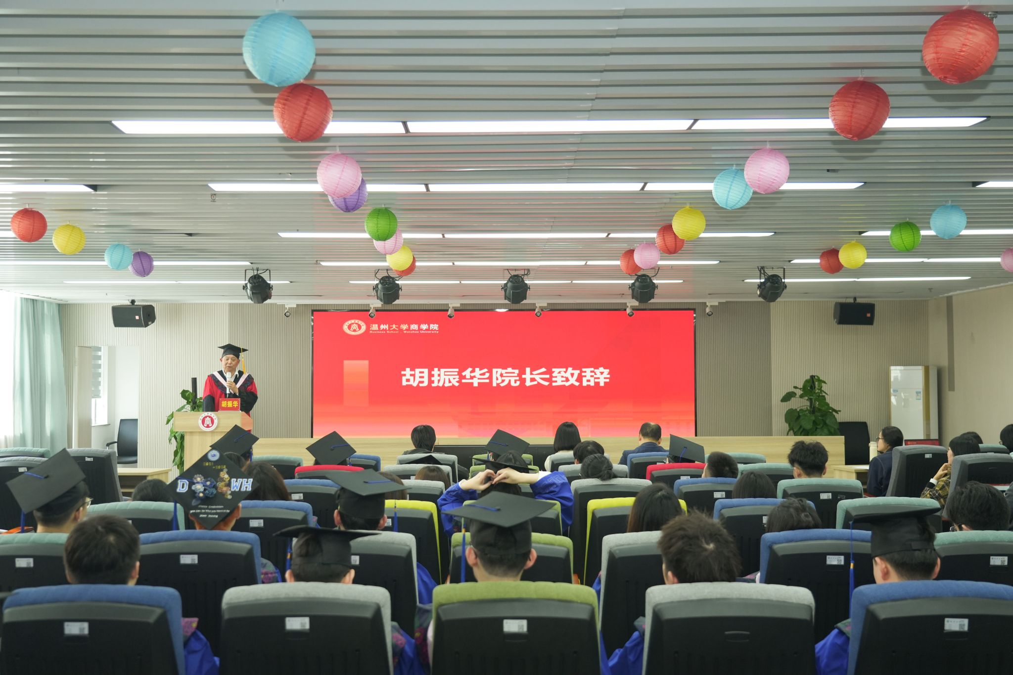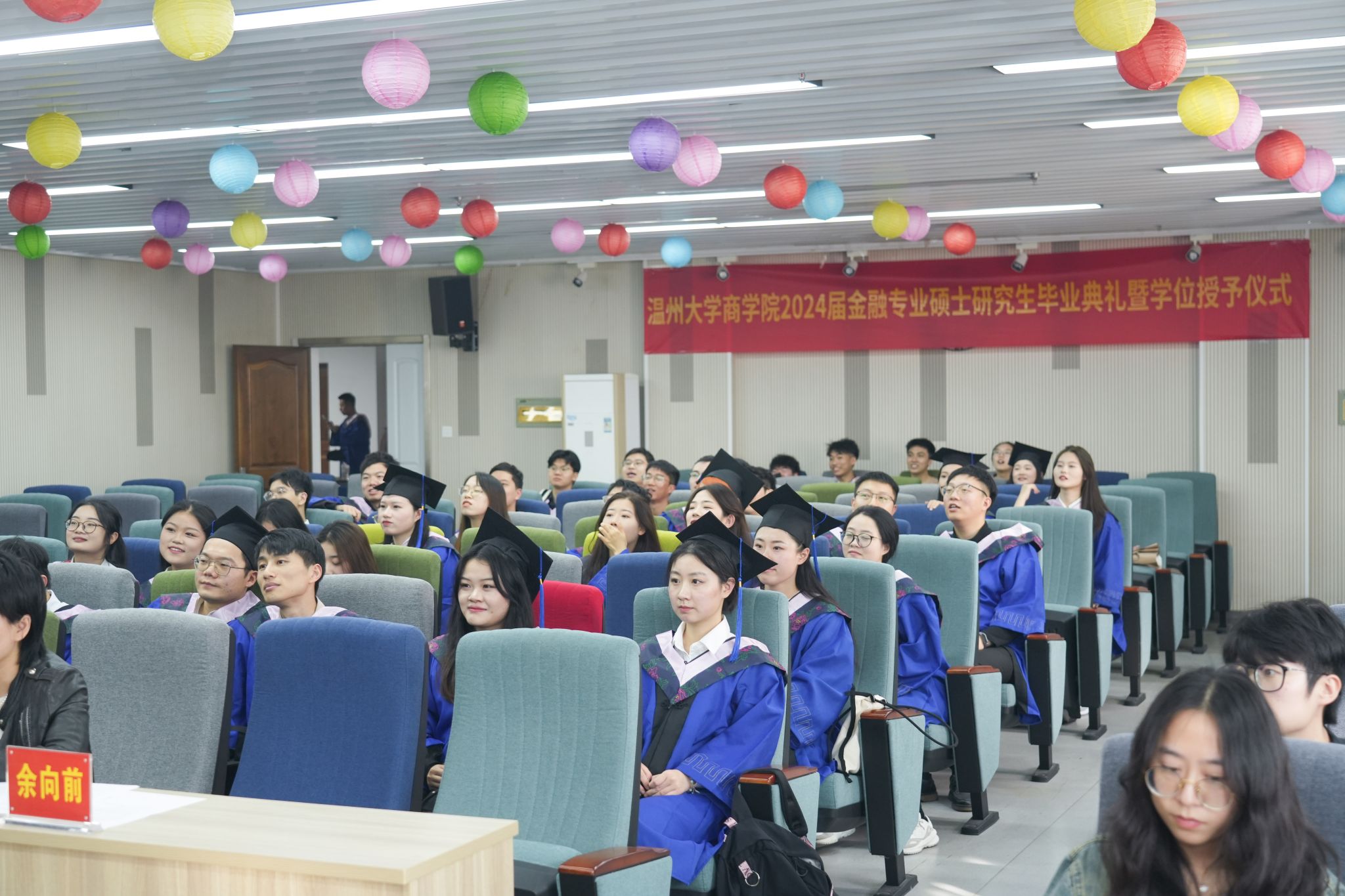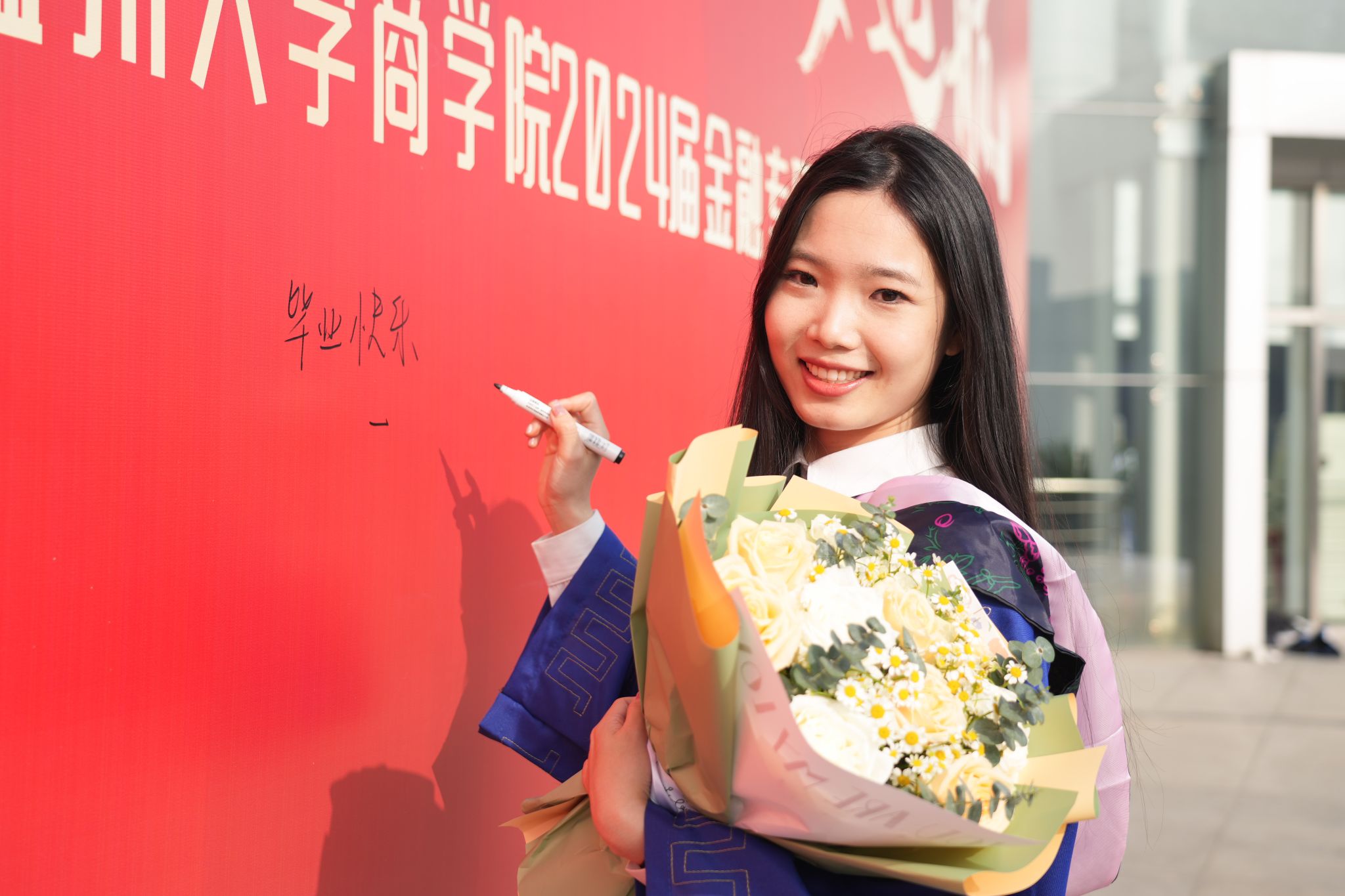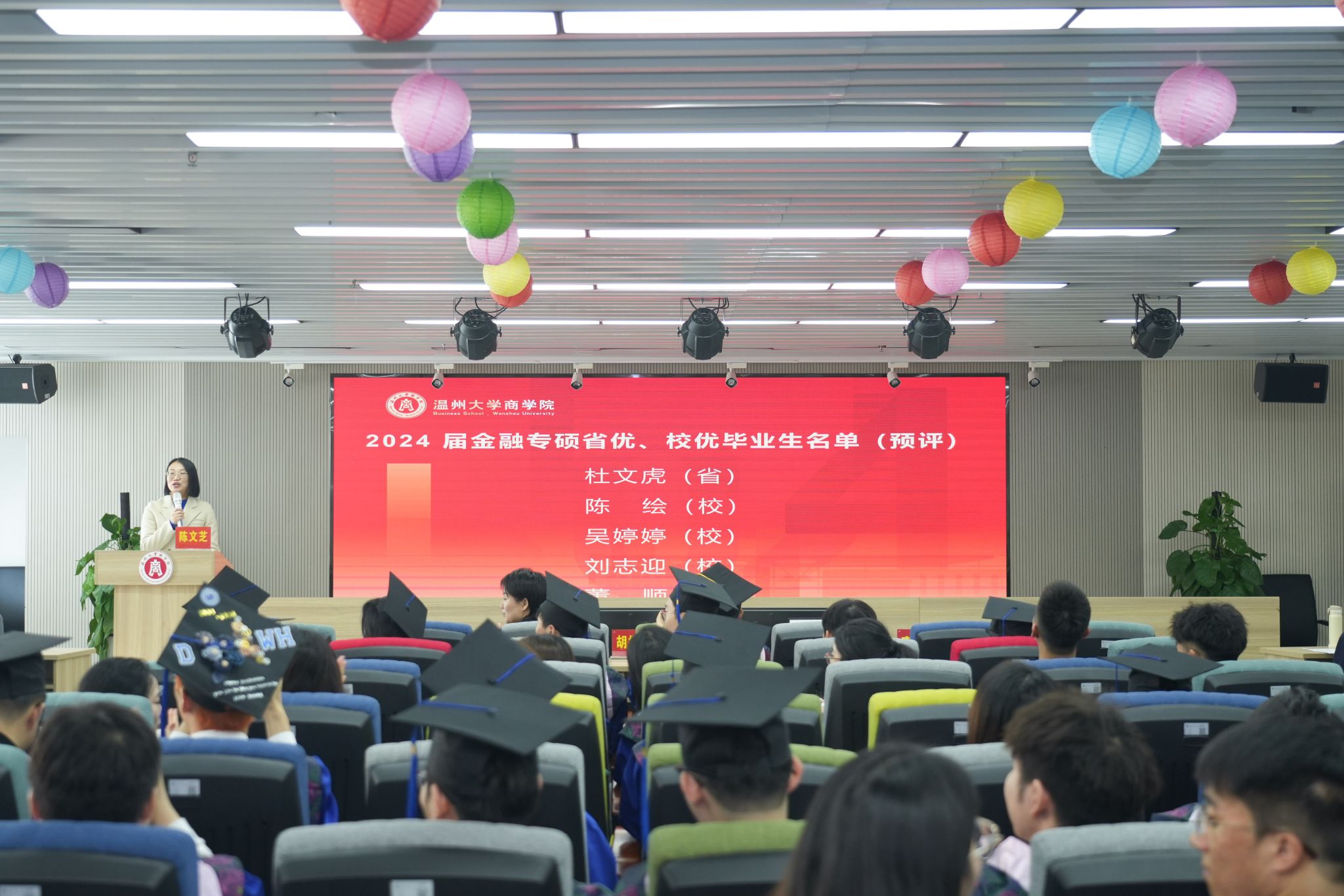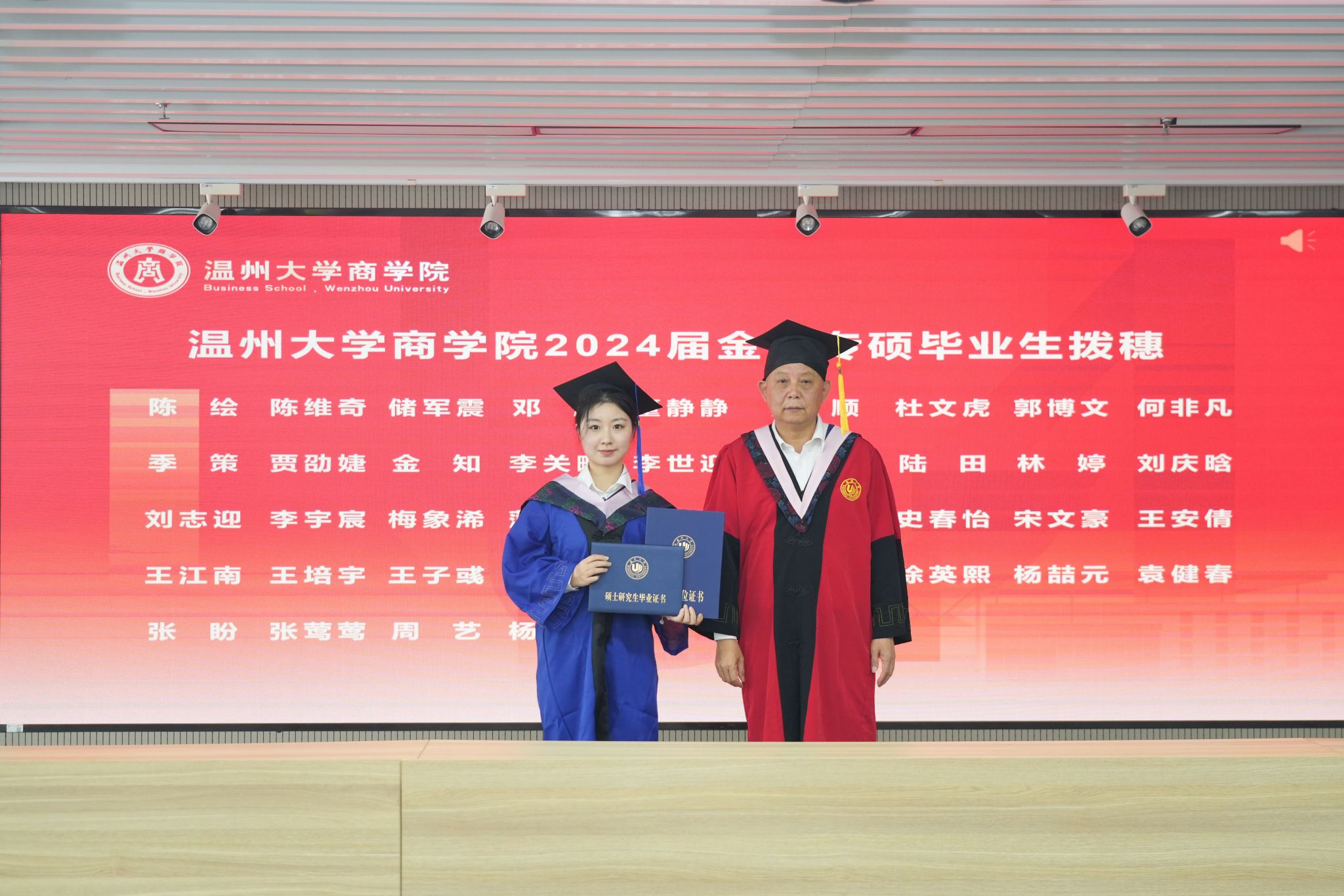 21级金融专硕刘志迎同学作为毕业生代表发言。她感谢温州大学提供的优越求知平台和学习环境,免费开放大量的讲座和优秀的公开课,还有大师级别的老师传道授业解惑。老师们深入浅出的讲解,让学生们更加深刻的理解学术的精髓,同时学院还聘任行业大佬担任同学们的校外导师,为学生提供实习机会,分享行业经验。最后,她再次感谢学院老师们这两年多的悉心教导和精心栽培,感谢同学们给予的陪伴和支持。在未来的日子里,她祝愿各位老师硕果累累,桃李芬芬,祝愿温大蒸蒸日上,祝愿同学们前程似锦。