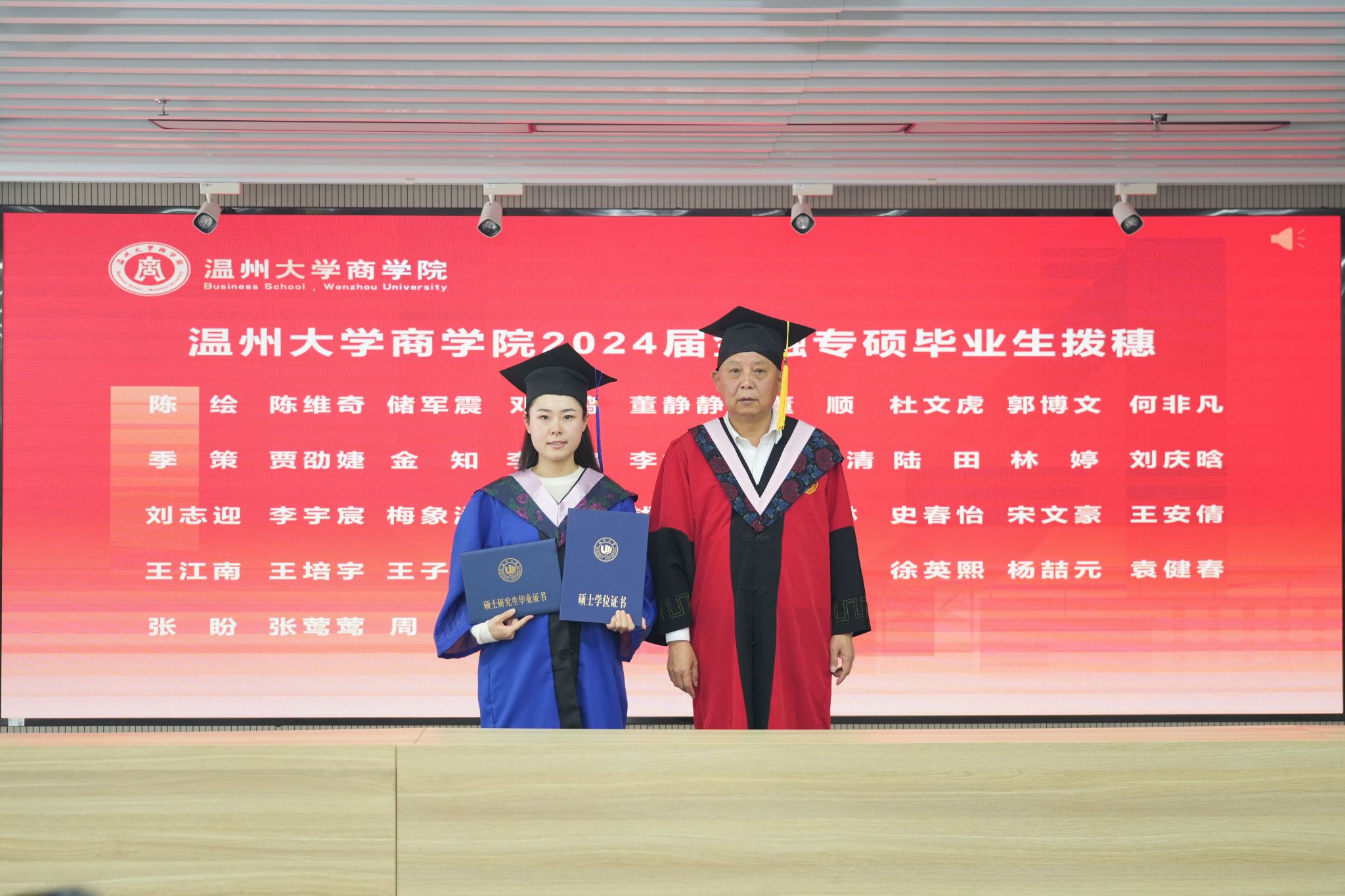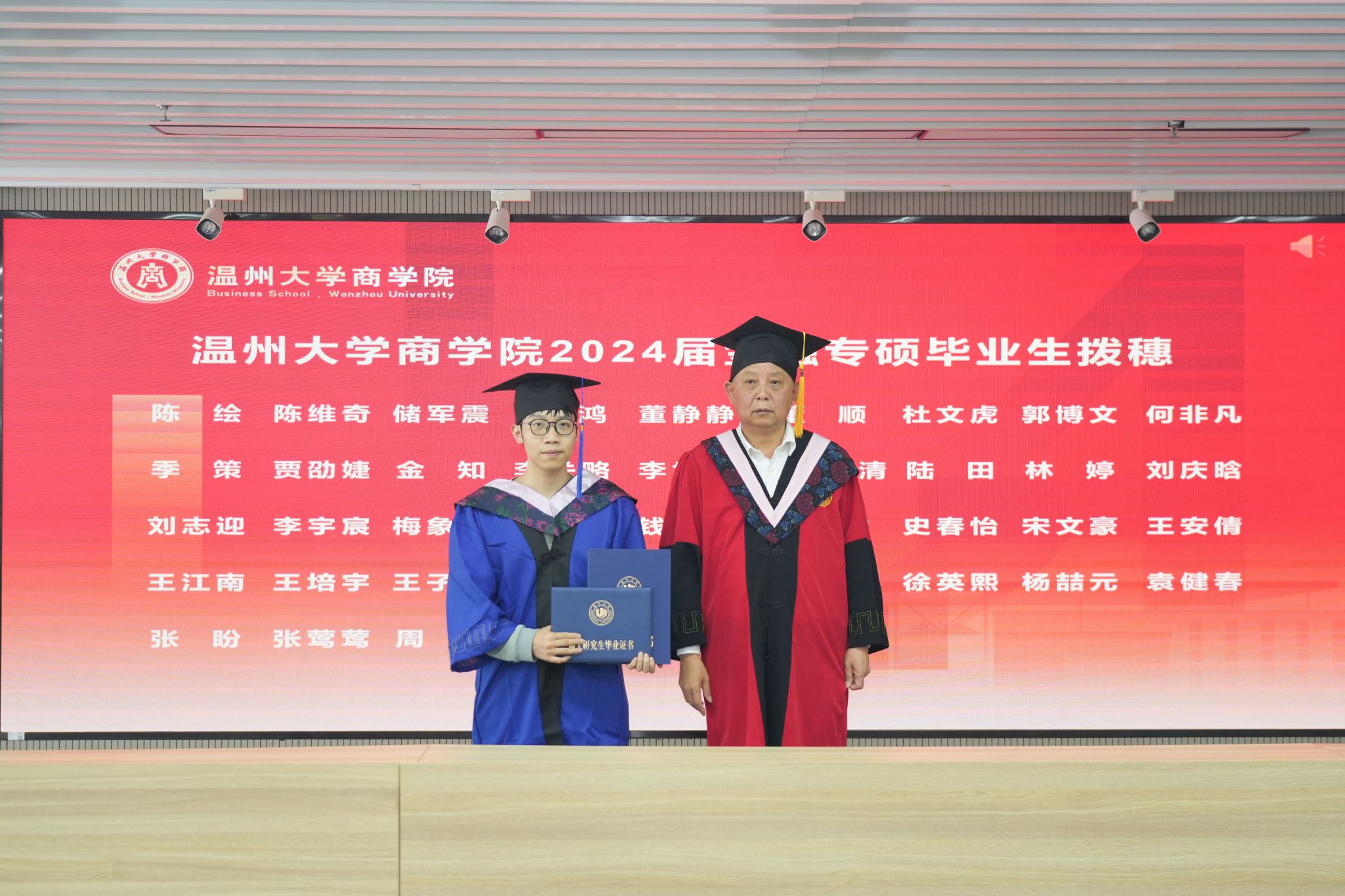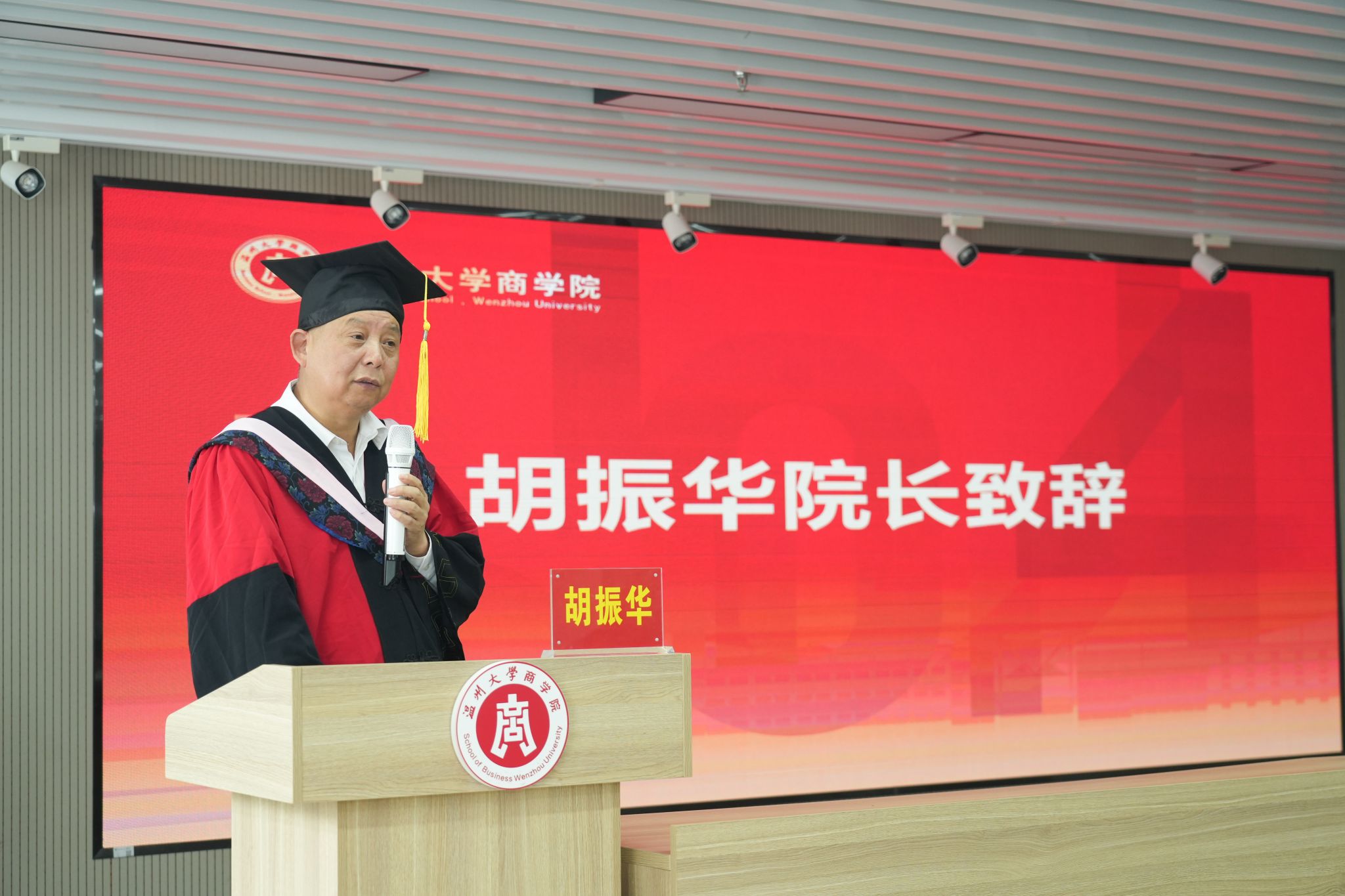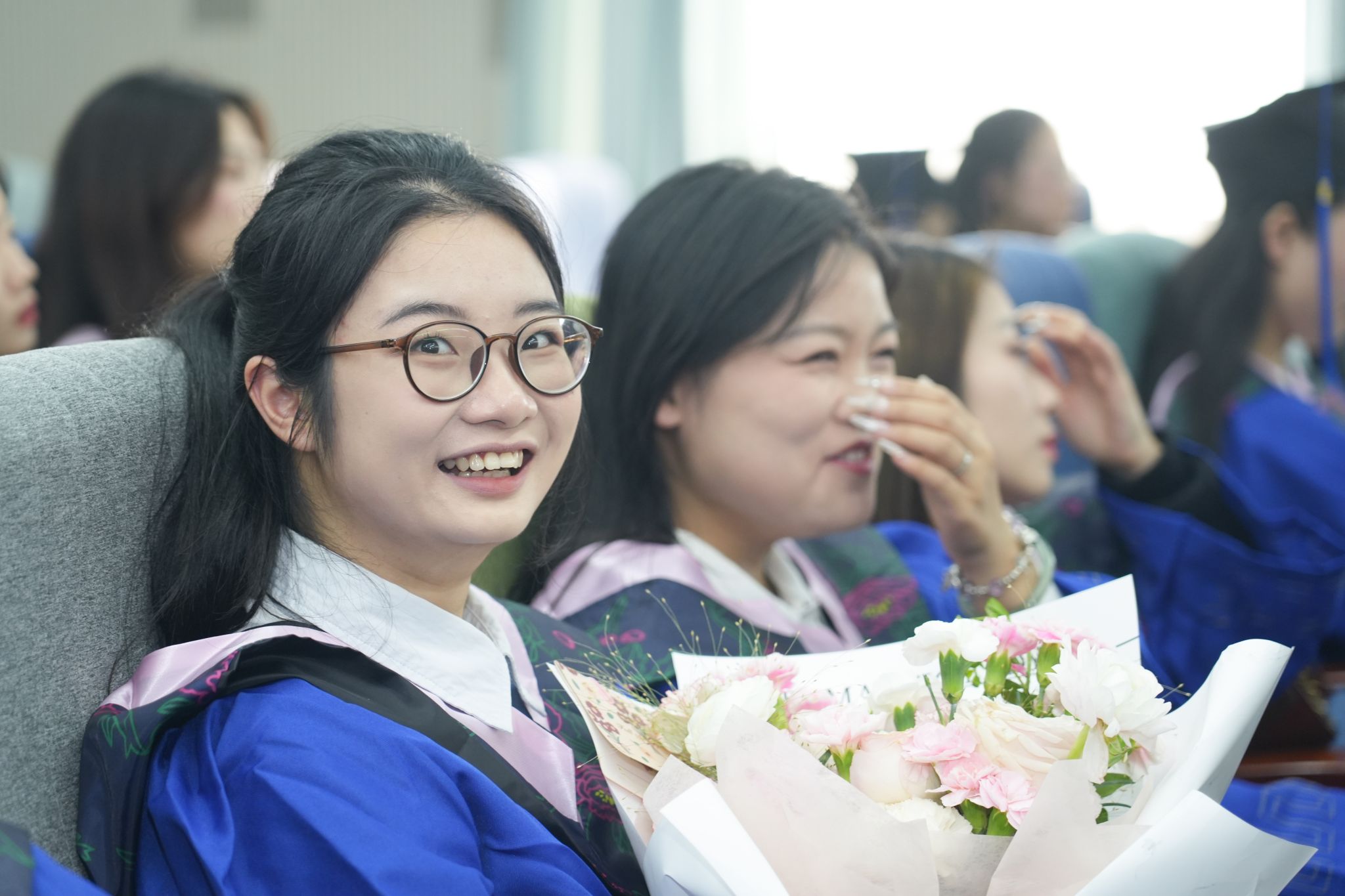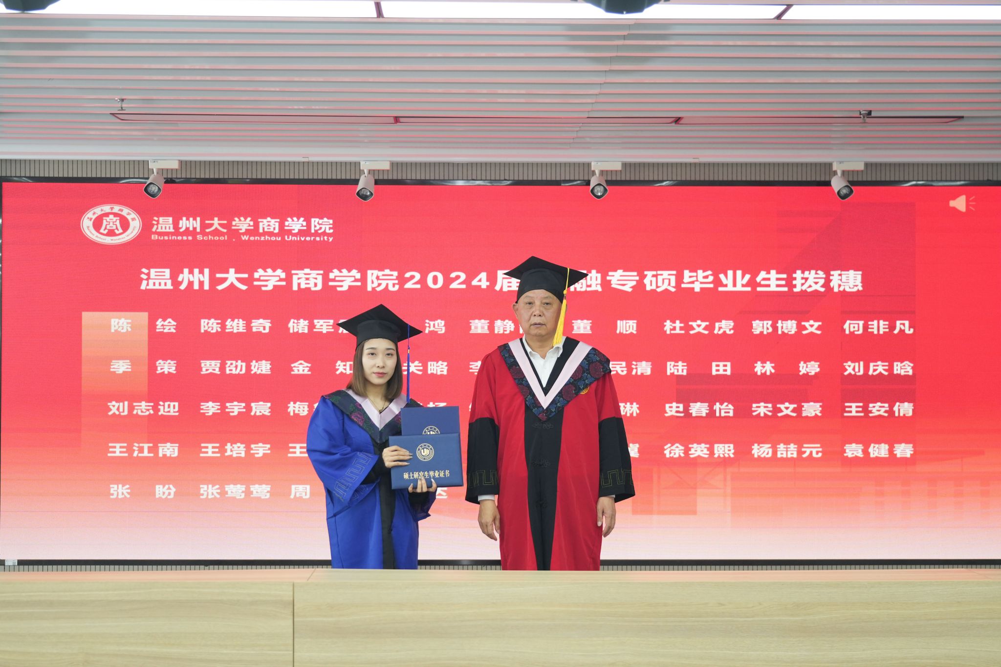 21级金融专硕刘志迎同学作为毕业生代表发言。她感谢温州大学提供的优越求知平台和学习环境,免费开放大量的讲座和优秀的公开课,还有大师级别的老师传道授业解惑。老师们深入浅出的讲解,让学生们更加深刻的理解学术的精髓,同时学院还聘任行业大佬担任同学们的校外导师,为学生提供实习机会,分享行业经验。最后,她再次感谢学院老师们这两年多的悉心教导和精心栽培,感谢同学们给予的陪伴和支持。在未来的日子里,她祝愿各位老师硕果累累,桃李芬芬,祝愿温大蒸蒸日上,祝愿同学们前程似锦。