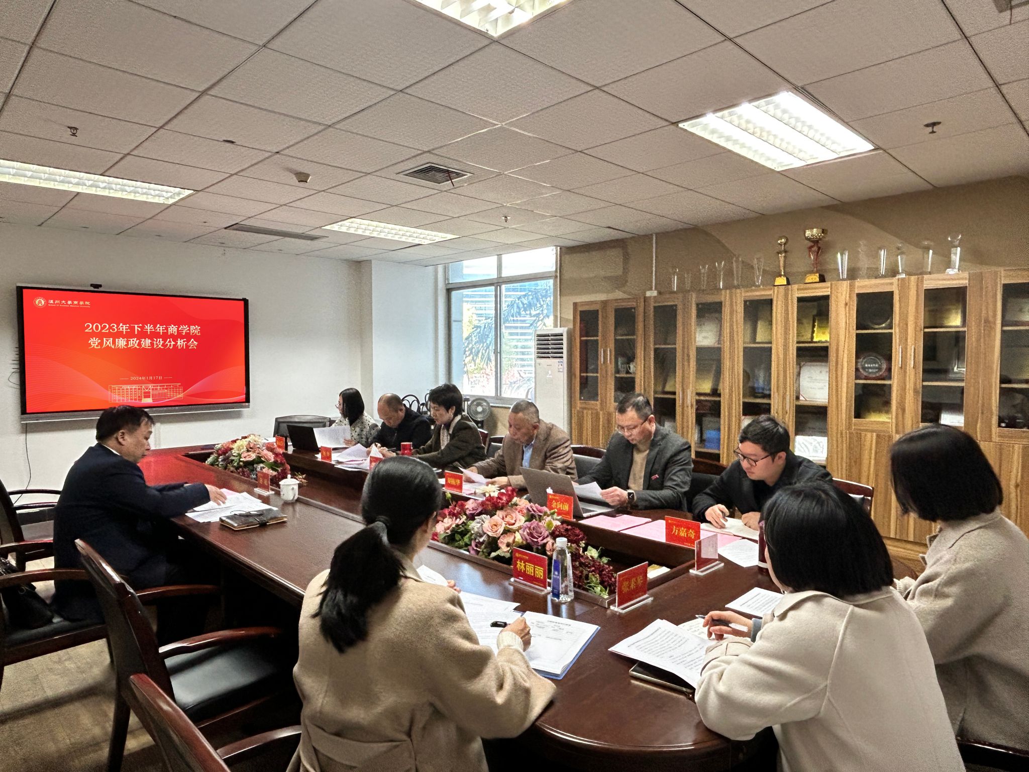 为深入贯彻党的二十大精神,推进全面从严治党向纵深发展,切实落实党风廉政建设责任制,强化学院党委主体责任、纪委监督责任和班子成员“一岗双责”,根据校党委《温州大学关于在二级单位实行领导班子党风廉政建设情况分析会制度的通知》精神,我院党委于2024年1月17日在A222会议室召开了2023年下半年党风廉政分析会,分析会由商学院党委书记李密主持,校长赵敏、商学院院长胡振华、副书记兼纪委书记唐华、副院长余向前、陈文芝等出席,教师代表纪委委员张素琴,跟岗干部方嘉奇、王露列席了分析会。