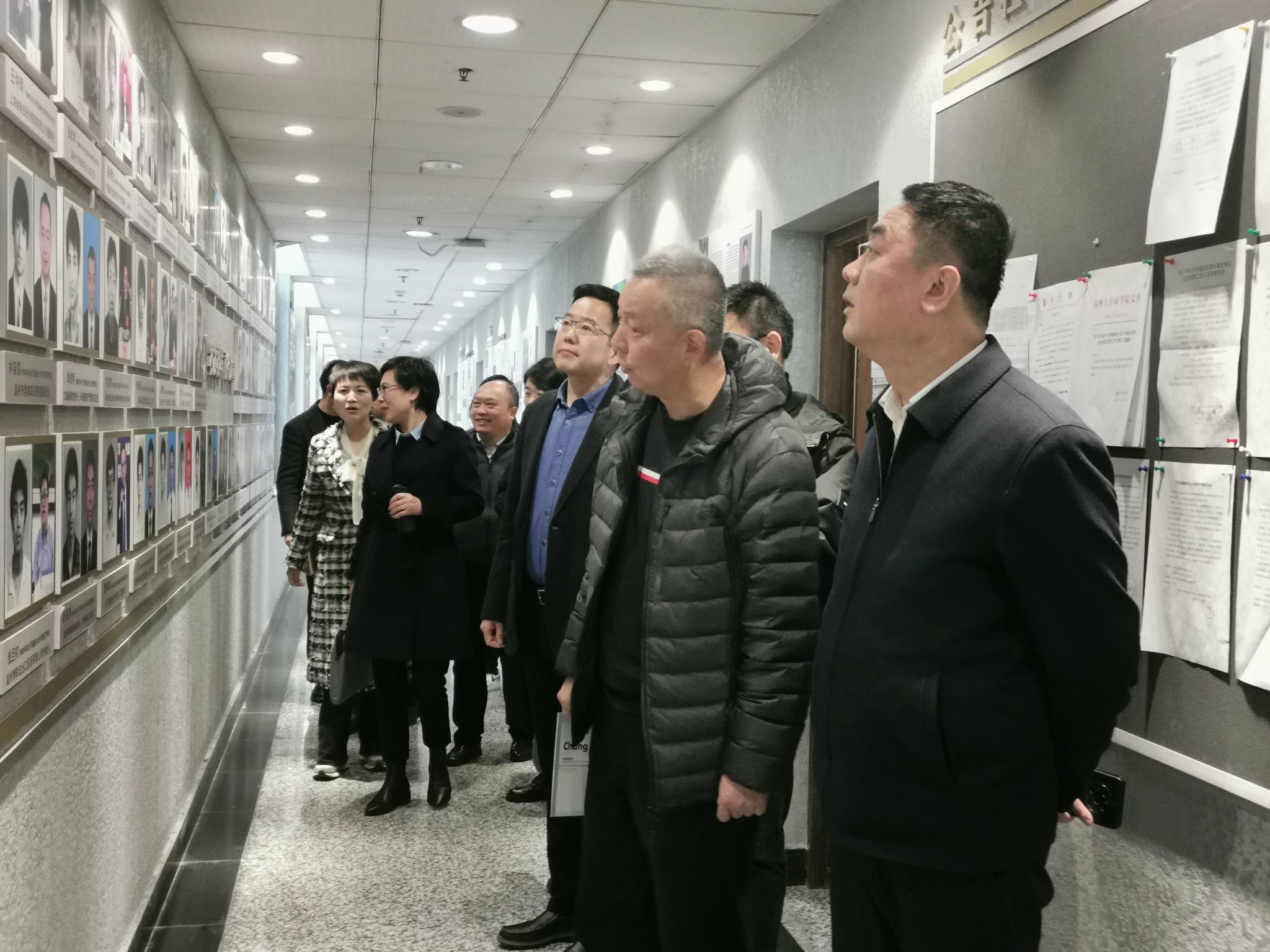 在商学院领导班子的陪同下,钱强书记一行参观了商学院文化长廊。