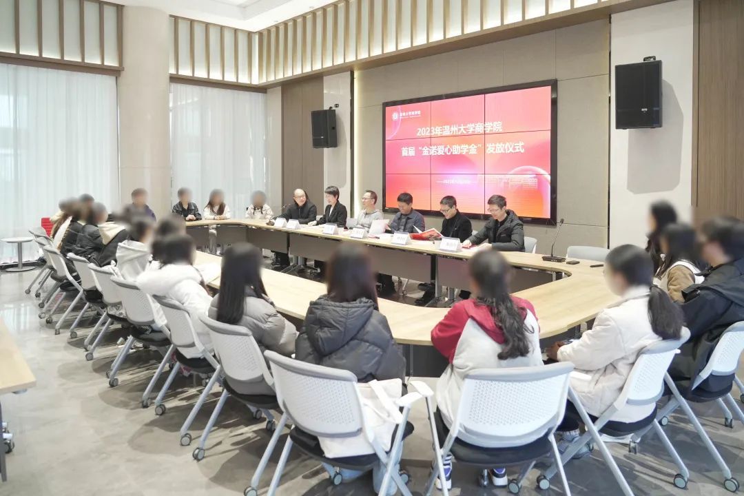 12月29日下午,温州大学商学院首届“金诺爱心助学金”发放仪式暨刘军校友沙龙于校友之家顺利举行。温州大学党委副书记庄兴忠,海宁鑫诺服装有限公司董事长、90级外贸经济专业校友刘军,90级财会专业校友林朗朗,温州大学校友办副主任蔡振闹,温州大学商学院党委书记李密等出席了大会。