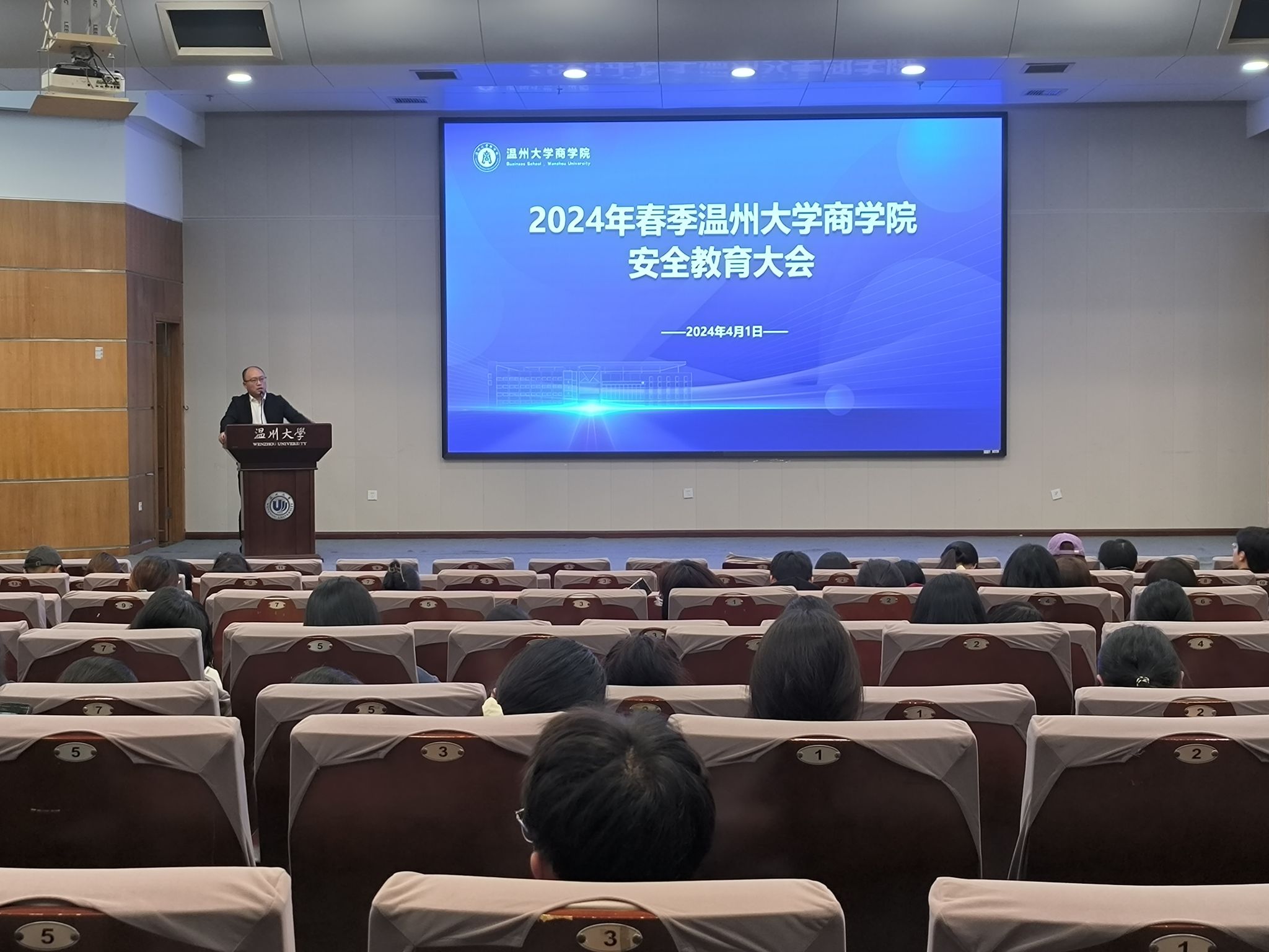 为进一步增强同学们的安全防范意识,提高自我保护能力,同时积极发挥班级主要学生干部在维护学校安全稳定中的重要作用,切实筑牢校园安全稳定防线,打造5A级平安校园,4月1日晚,商学院学工办举办了2024年春季温州大学商学院安全教育大会。学院党委副书记唐华,全体辅导员,本研各班班长、团支书、心理委员、安全委员及寝室长等主要学生干部参加大会。