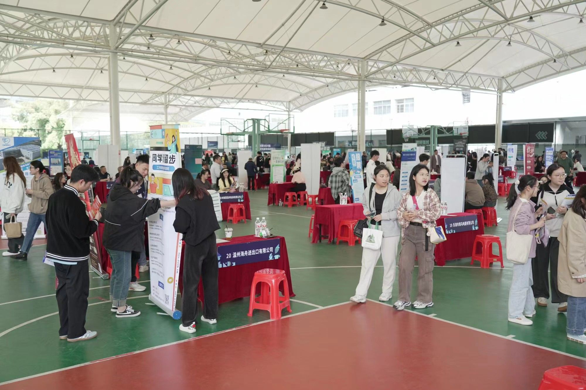 温州市人力社会局人才发展服务中心副主任陈其岳,温州大学招生与就业处副处长魏晓晓,温州大学商学院党委书记李密、党委副书记唐华,人文学院党委副书记魏一和外国语学院党委副书记陈勃等亲临现场,重点关注了各单位人才需求和招聘实况,会场上人声鼎沸,气氛热烈。