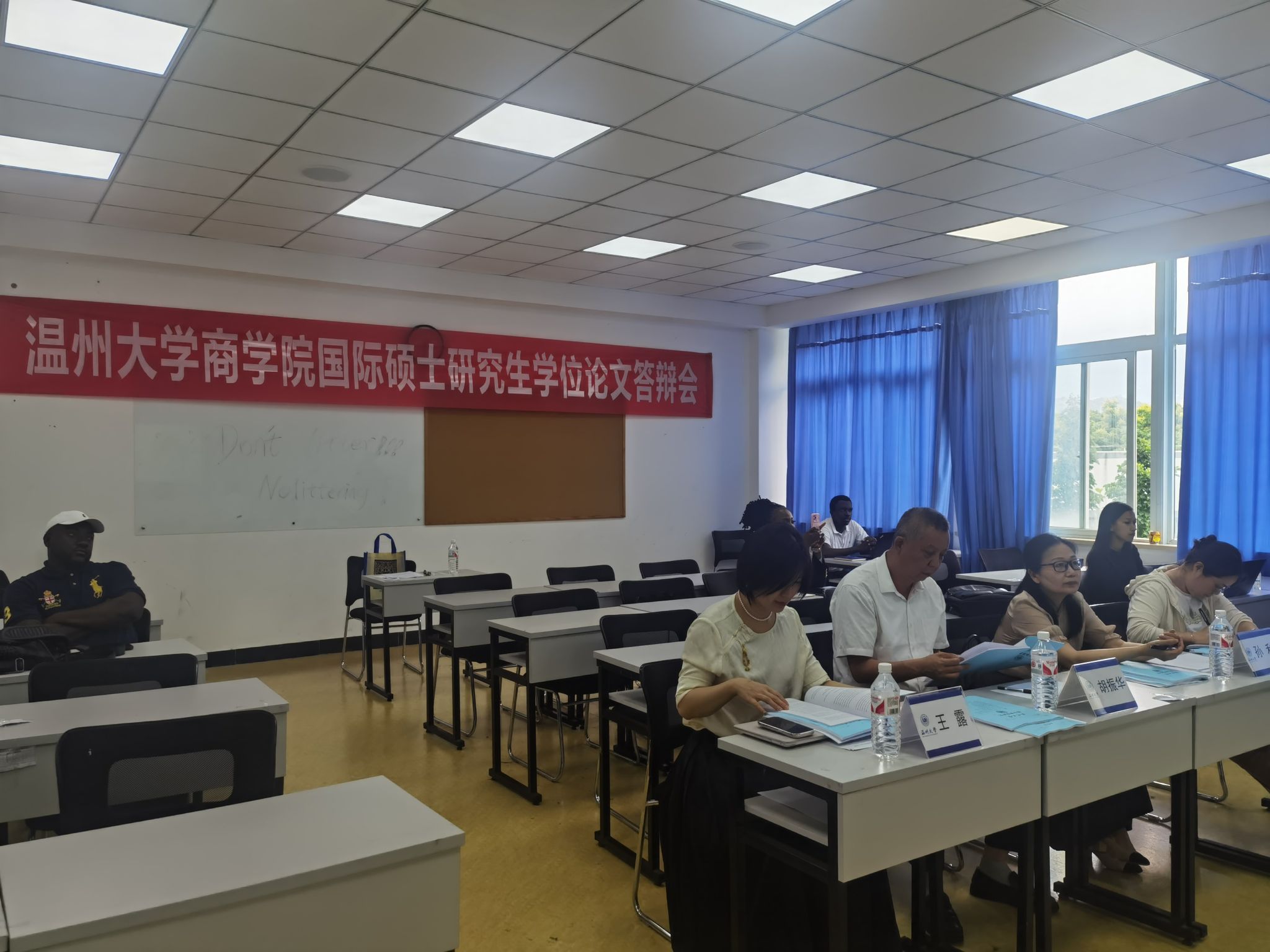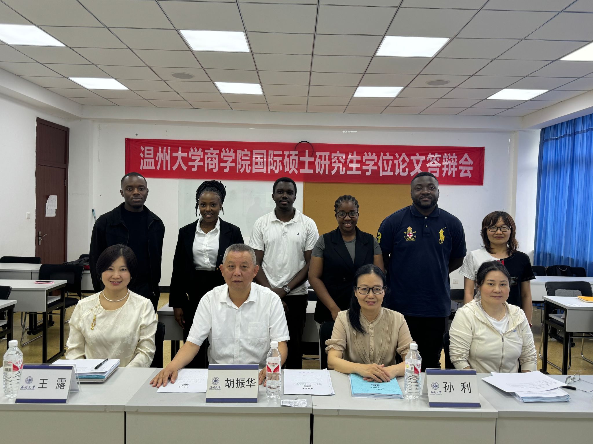 2024年5月27日下午,温州大学商学院2021级国际硕士研究生学位论文答辩暨2022级国际硕士研究生开题评审如期举行。参加本次论文答辩及开题评审的学生共5人,分别来自津巴布韦、乌干达、尼日利亚、刚果(布)等国家。其中3位2021级研究生参加论文答辩,2位2022级研究生参加论文开题评审,均为应用经济学专业学生。答辩委员会主席由温州理工学院外国语学院院长孙利教授担任,答辩委员会成员及开题评审小组专家由温州大学商学院院长胡振华教授、王露副教授、陈翊副教授组成。