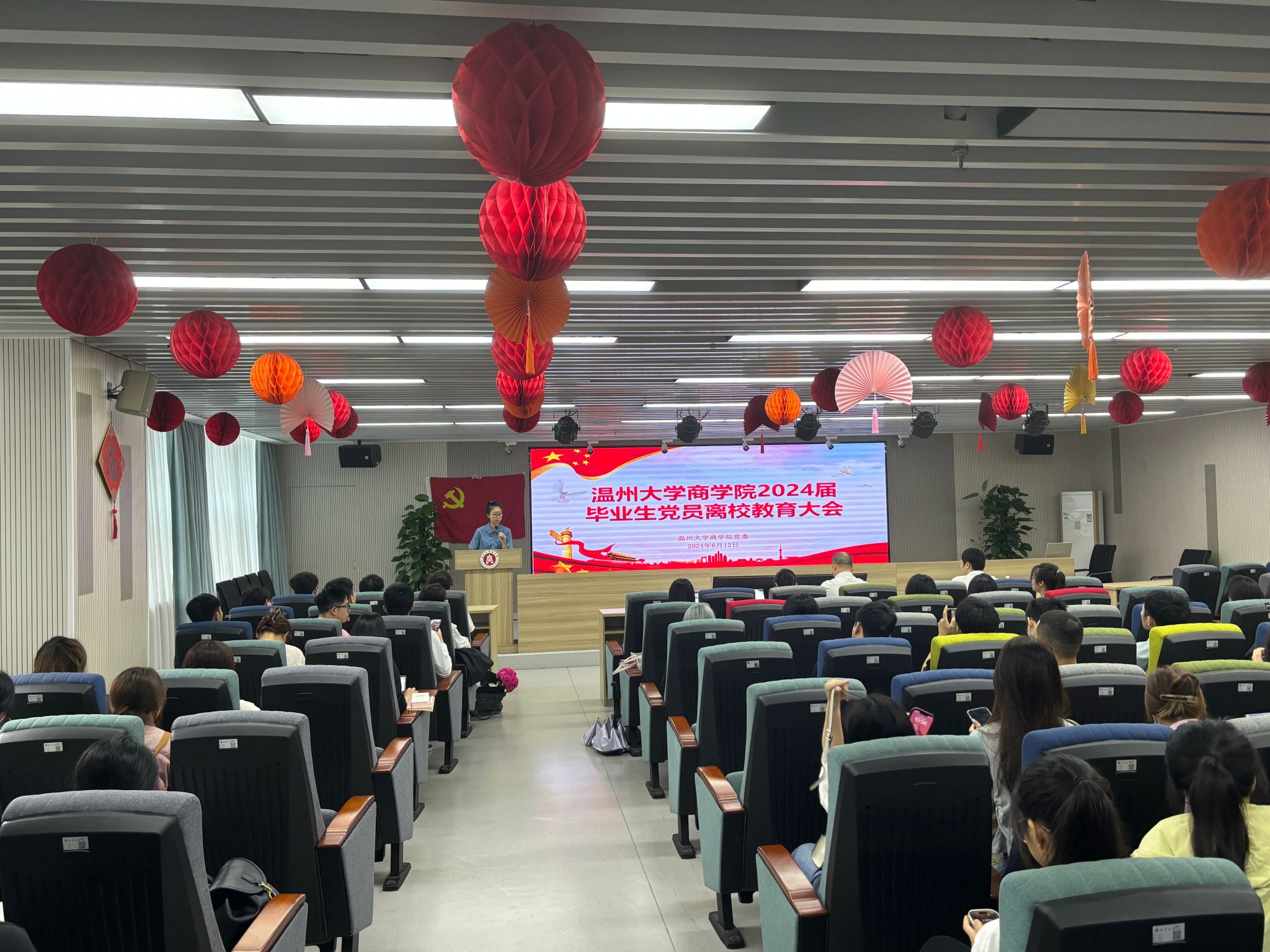 为进一步加强毕业生党员的党性教育,提升廉洁自律意识,2024年6月12日上午,温州大学商学院2024届毕业生党员离校教育大会在A226会议室顺利举行。学院党委书记唐华、各学生支部书记、支部助理以及毕业生党员参加了此次会议,大会由学生党建工作指导老师聂海燕主持。