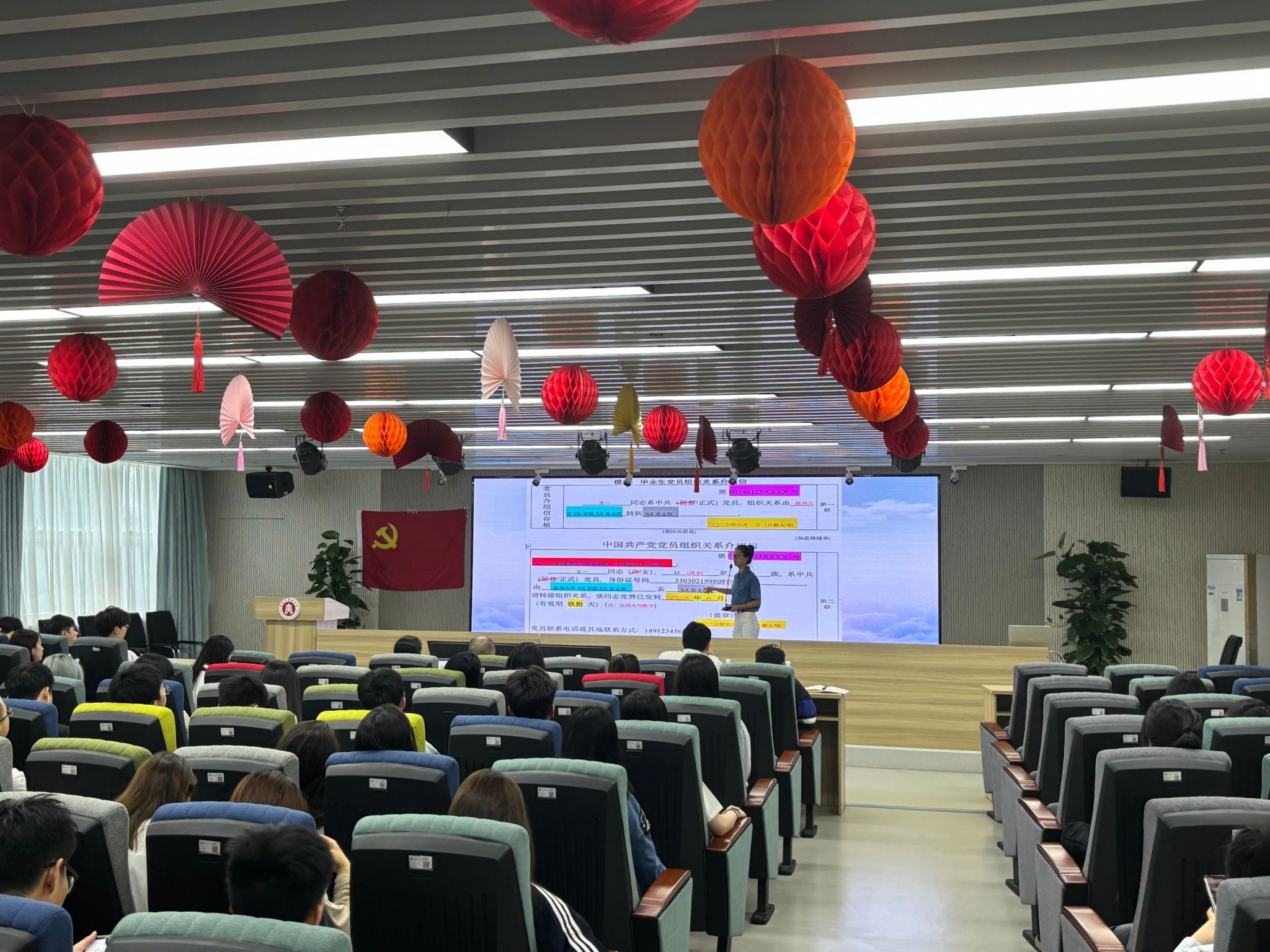 紧接着,学生党建工作指导老师聂海燕为大家详细讲解了毕业生党员组织关系转接的办理手续和注意事项,她分别列出了党员组织关系转接的三种情况,还对组织关系介绍信填写、毕业生党员组织关系转接要求、组织关系转接中常见的问题等进行了说明,同时也对毕业生组织关系转接过程中常见的问题进行了一一解答,并强调了党员组织关系转接工作的重要性。