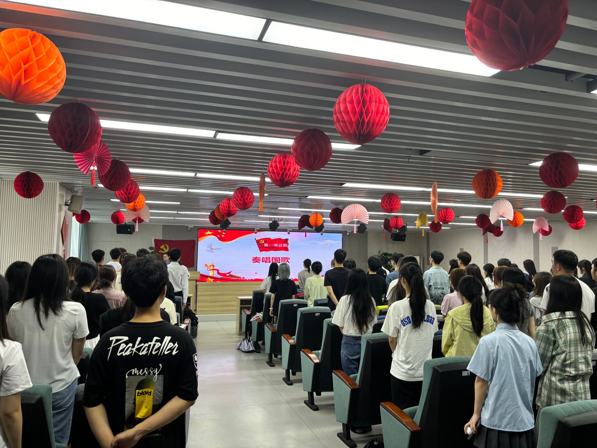 在庄严的国歌声中,大会拉开了序幕。毕业生党员代表黄政锋同志带领与会师生党员重温入党誓词,提醒每位毕业生党员时刻牢记党员身份,永葆政治本色。