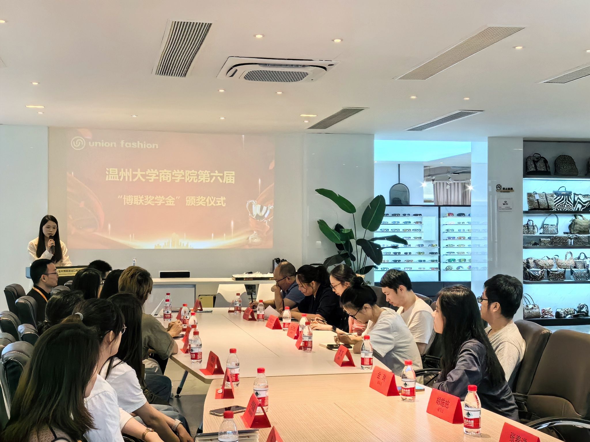 2024年6月18日下午,温州大学商学院第六届“博联奖学金”颁奖仪式在温州市博联进出口有限公司顺利举行,获奖学生们通过实地参观交流,近距离感受了校友企业文化。学院党委书记唐华、党委副书记曾蓓蕾、学工办主任周洁文、学工办全体辅导员及获奖学生代表参加了本次活动。