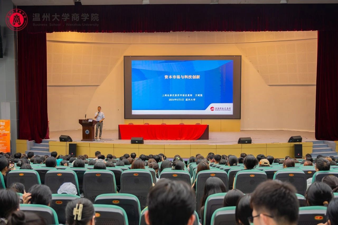 见面会结束后,我院特邀上交所市场发展部副总监万建强为新生做始业教育——金融安全第一课。他回顾了中国资本市场三十年发展历程,强调其促进经济与科技创新的关键作用,并解析了资本市场最新形势及“国九条”对科技企业的支持政策。特别指出科创板在助力硬科技企业上市、促进科技自立自强方面的显著成果。最后,他勉励新生紧跟时代,深入学习资本市场知识,为未来的科技创新与金融投资生涯奠定坚实基础。