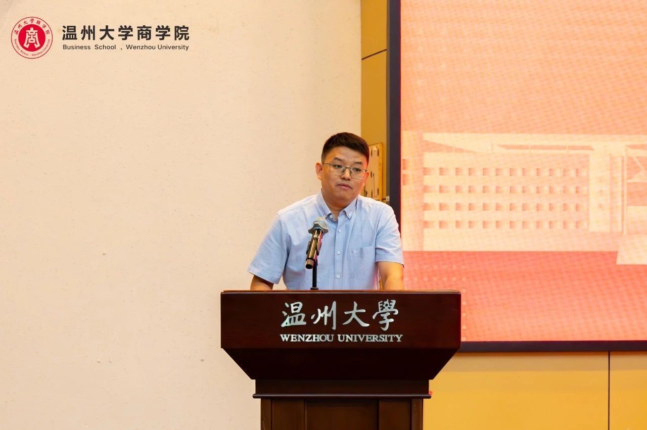 会议伊始,罗建利院长向来自五湖四海的新同学们表示最诚挚的祝贺和最热烈的欢迎!并提出三点殷切希望:首先,他鼓励同学们要学会享受孤独与团结协作的并存。他指出,大学的学习生活是开放而包容的,但同时也需要面对孤独的挑战。学会享受孤独,是成长的必经之路;而团结协作,则是通往成功的关键。其次,罗院长希望同学们能够立足专业,勇于创新。他介绍了商学院近年来取得的辉煌成就,鼓励同学们珍惜学习时光,充分利用学院学校提供的优质资源,努力学习专业知识,同时勇于探索未知领域,培养创新精神和实践能力。最后,罗院长强调了仰望星空与脚踏实地的重要性。他勉励同学们要敢于“做梦”、勇于追梦,同时也要脚踏实地、勤奋努力。奋斗是青春最亮丽的底色,行动是青年最有效的磨砺。他呼吁同学们以校训“求学问是、敢为人先”为指引,以院训“尚信明道,勇毅笃行”为使命,不断追求卓越,不断超越自我,在温大这片热土上绽放出最耀眼的光芒。