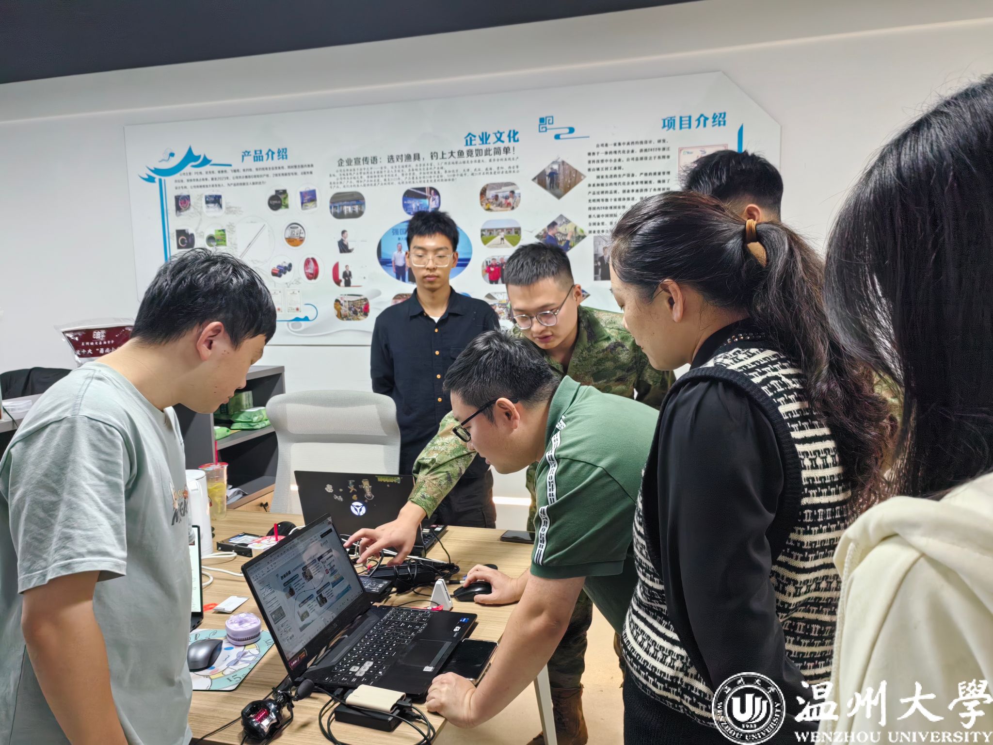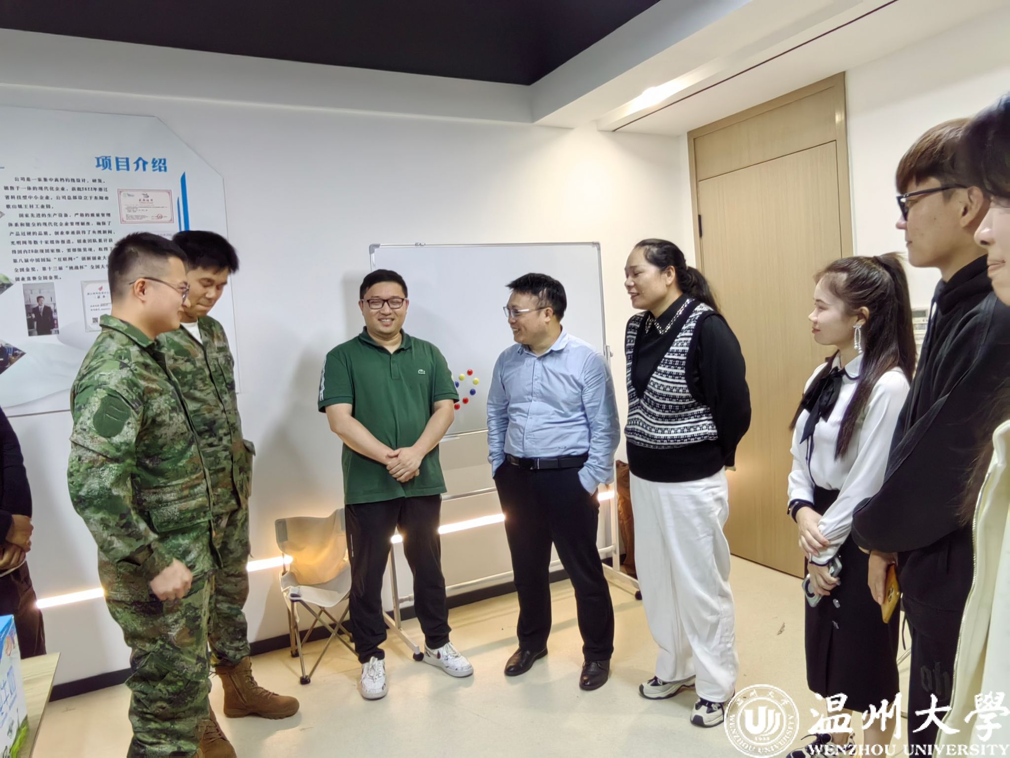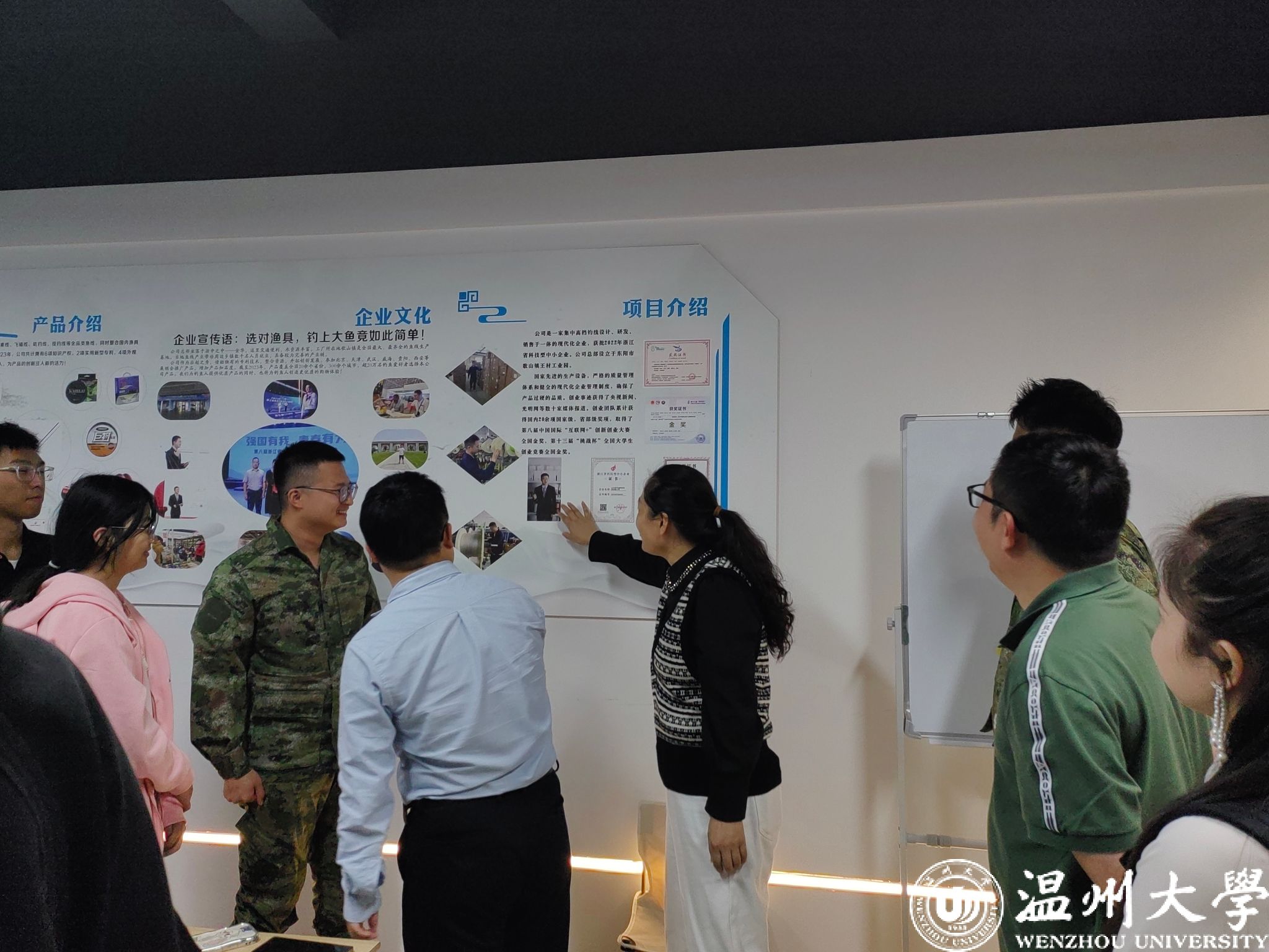 10 月 11 日上午,在温大科创楼,学院党委书记唐华、党委副书记曾蓓蕾等一行人走访慰问了正在积极备战中国国际大学生创新大赛的“渔”乐无穷——中国高质量渔具项目在省赛表现优异并成功入围国赛。