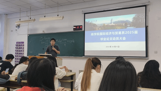 为规范毕业论文管理,进一步提高毕业论文质量,温州大学商学院国贸系于2024年10月9日下午,先后在信息楼A308和北3-401召开了2025届毕业论文指导教师推进会和学生动员大会。