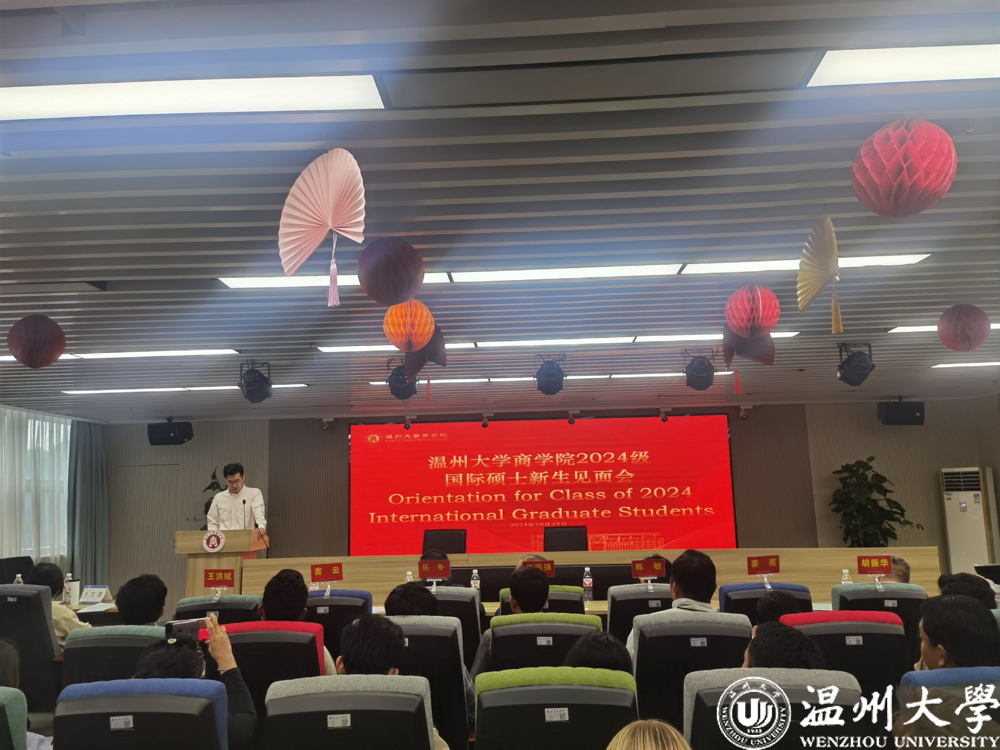 2024年10月25日下午,温州大学商学院2024级国际硕士研究生新生见面会在商学院A226会议室如期举行。商学院院长罗建利、商学院副院长王露、2024级国际硕士研究生导师、8位2024级应用经济学国际硕士研究生以及19位2024级应用经济学青山班硕士研究生等出席了此次会议。会议由专业主任王洪斌老师主持。