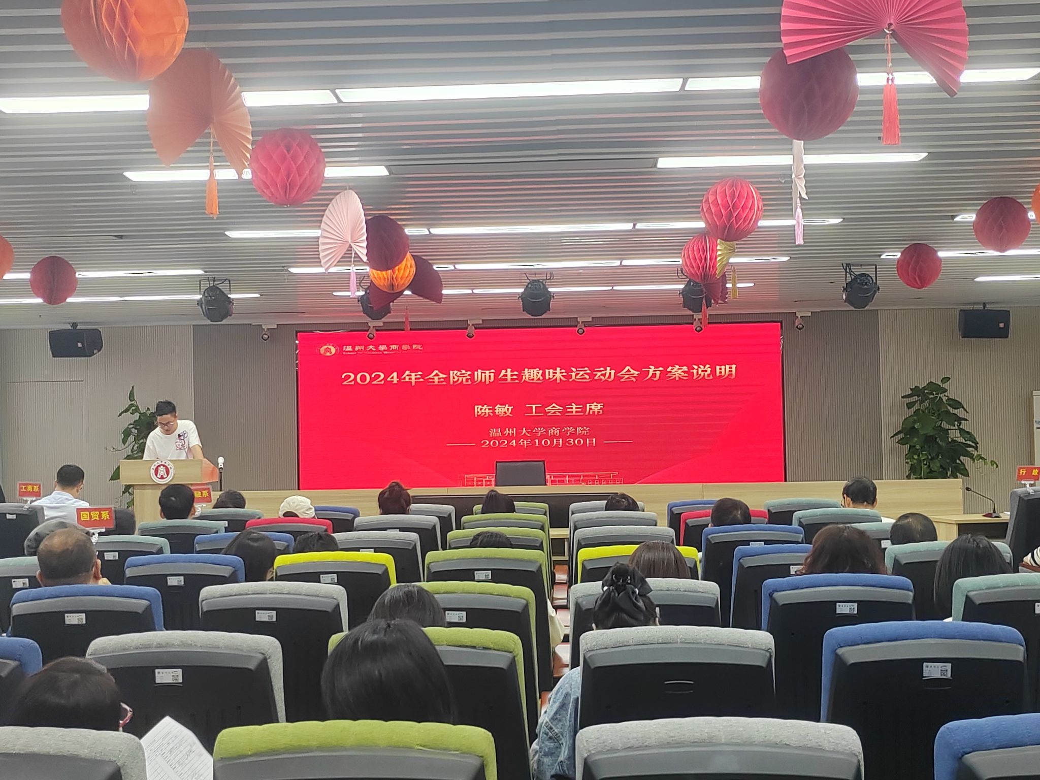 之后,学院工会主席陈敏老师对即将进行的2024年商学院师生趣味运动会向各位老师进行情况汇报,希望各位老师积极报名并在参赛过程中要注意安全。