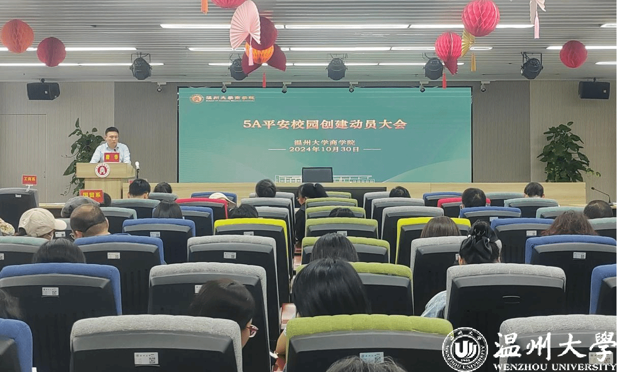 为深入推进平安校园建设,加强校园安全宣传教育工作,提高师生安全防范意识和抵御风险能力,积极响应学校“深化平安,争创5A”的号召,温州大学商学院于2024年10月至11月期间,全面开展第十届“平安温大宣传月”活动,致力于全面营造“争创5A等级平安校园”的浓厚氛围,切实维护校园安全稳定。