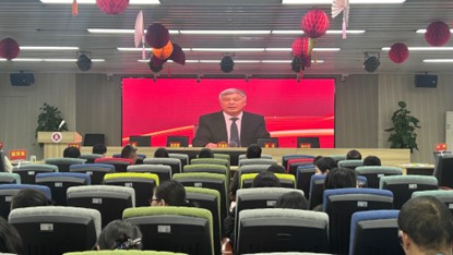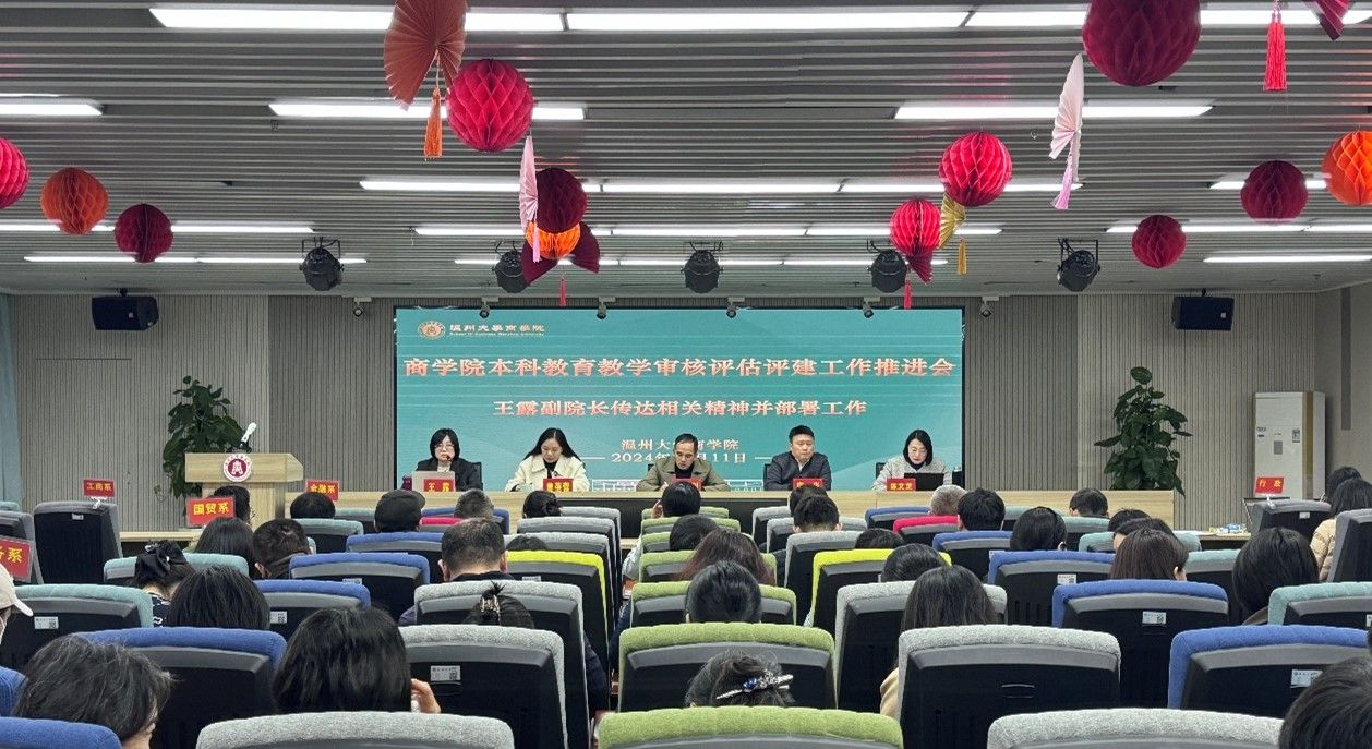 2024年12月11日下午14:00,商学院于商院楼A226仲辉商道讲堂举行了商学院全院教职工大会暨教育教学审核评估评建工作推进会。会议由党委书记唐华主持,院领导班子成员、各教工支部书记、各系主任、专业负责人、各科室负责人、教师代表等参会。