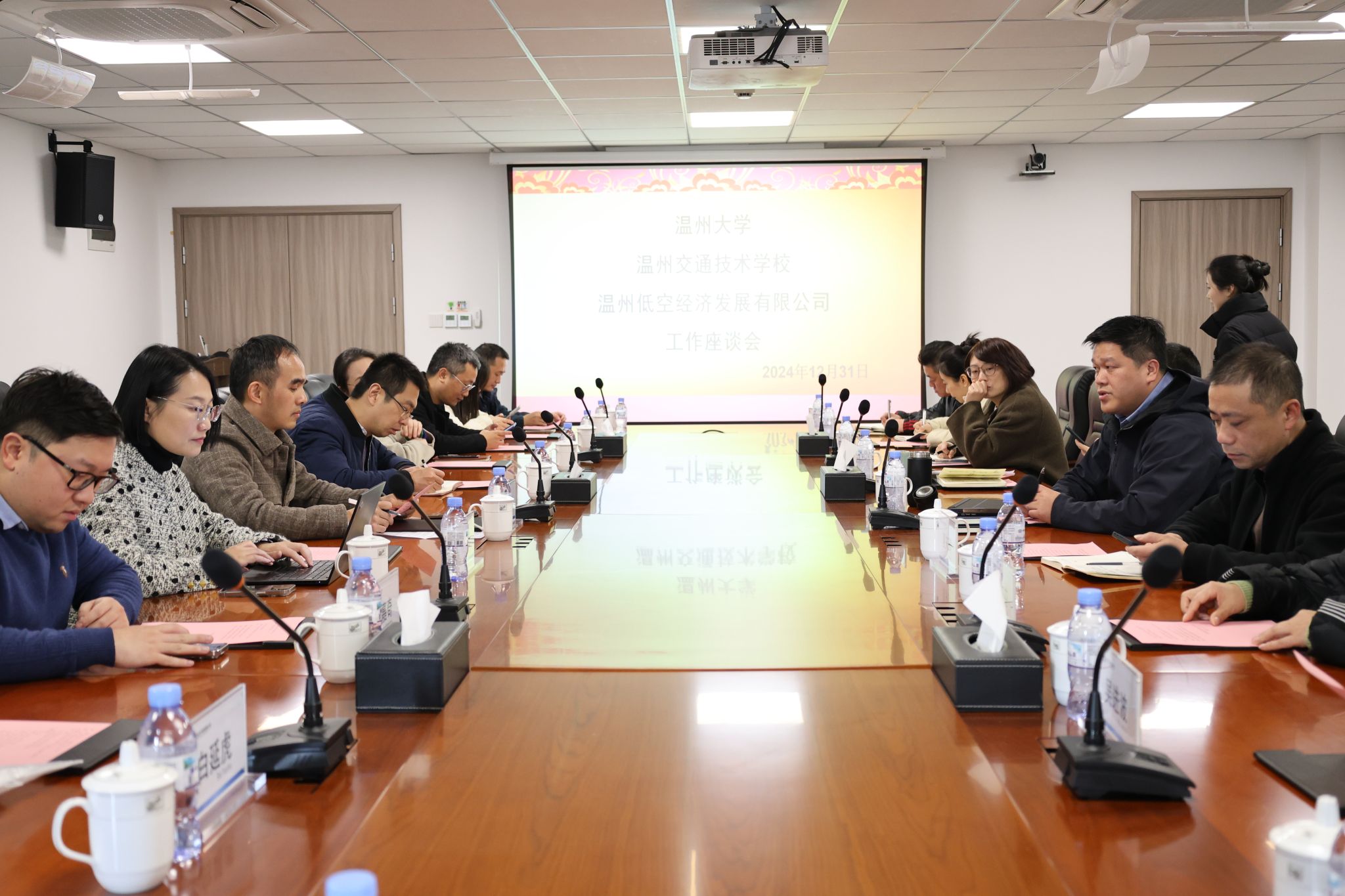 2024年12月31日下午,温州大学商学院罗建利院长、温州大学校地合作处王鹏副处长带队赴温州低空经济发展有限公司调研,与温州低空经济发展有限公司、温州交通技术学校共同探讨温州市低空经济发展,商讨校企合作共建低空经济研究院事宜,商学院教授博士团一行10人参与调研交流。