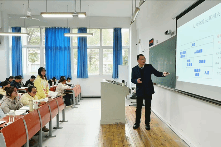 课堂上,余教授不仅对人口、劳动者、人才与人力资源等核心板块的理论知识进行了细致剖析,还结合杭宁温人口统计分析图实例展开讲解,让知识变得鲜活易懂。课堂上,向前老师通过生动有趣的公开课,将理论知识与实际案例结合,激发学生对人力资源领域的兴趣,帮助学生了解行业发展趋势和职业前景。整堂课,案例分析贯穿始终。在探讨中美对于成功商业人才的认知标准差异案例时,大家各抒己见,课堂氛围十分活跃。这种方式既能引导我们主动思考,又锻炼了团队协作与沟通表达能力。向前教授的课堂魅力十足,极具亲和力,脸上总是挂着微笑,给人如沐春风之感。讲解时,他的语音语调抑扬顿挫,配合丰富的肢体语言,让人不由自主沉浸其中。当同学提出新颖观点,他会毫不吝啬地夸赞,鼓励大家大胆表达。