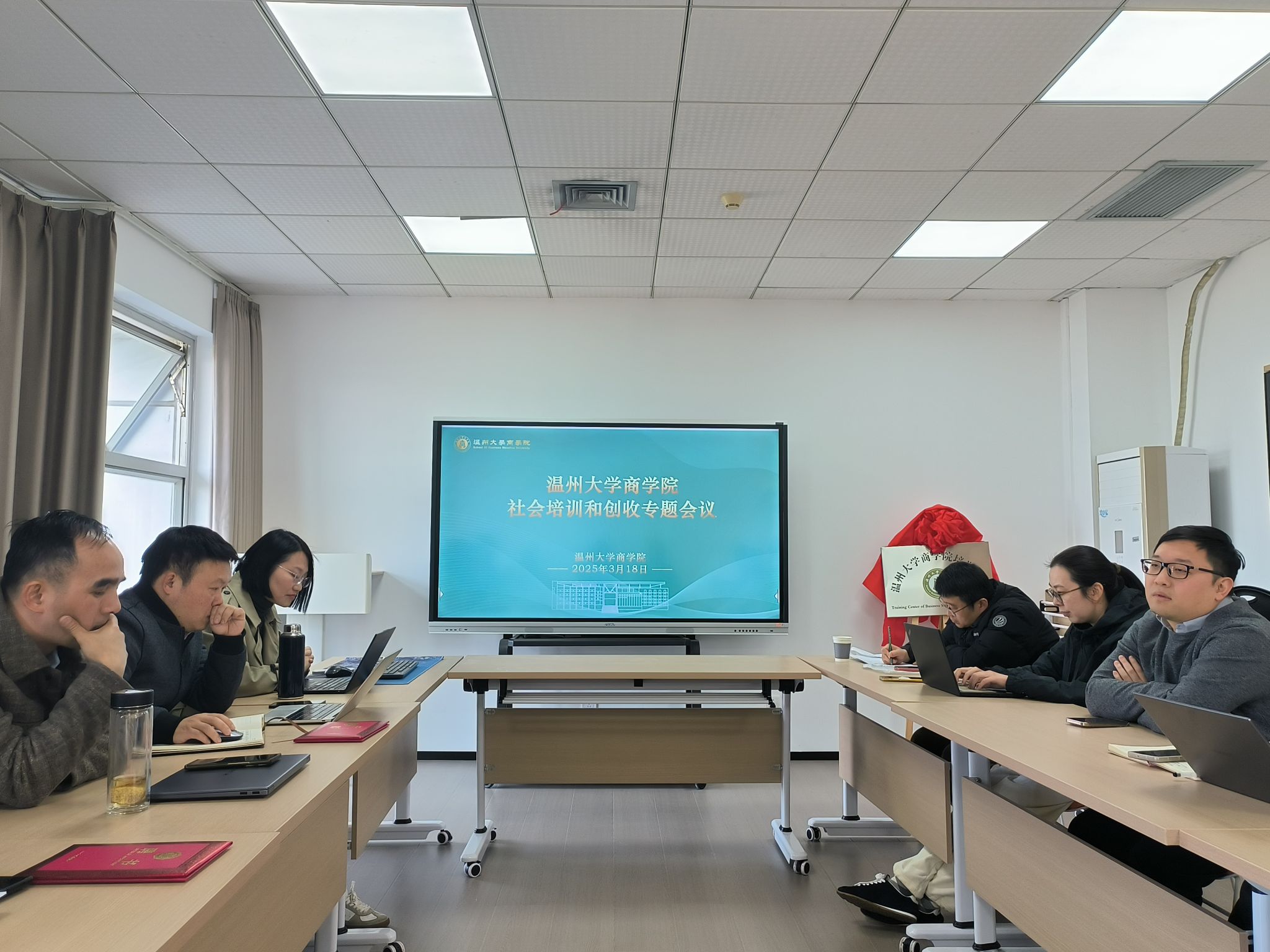 2025年3月18日下午,温州大学商学院在商院楼A609会议室召开了社会培训和创收专题工作会议。会议由商学院副院长陈文芝主持,学院领导、全院中层干部参加了会议。