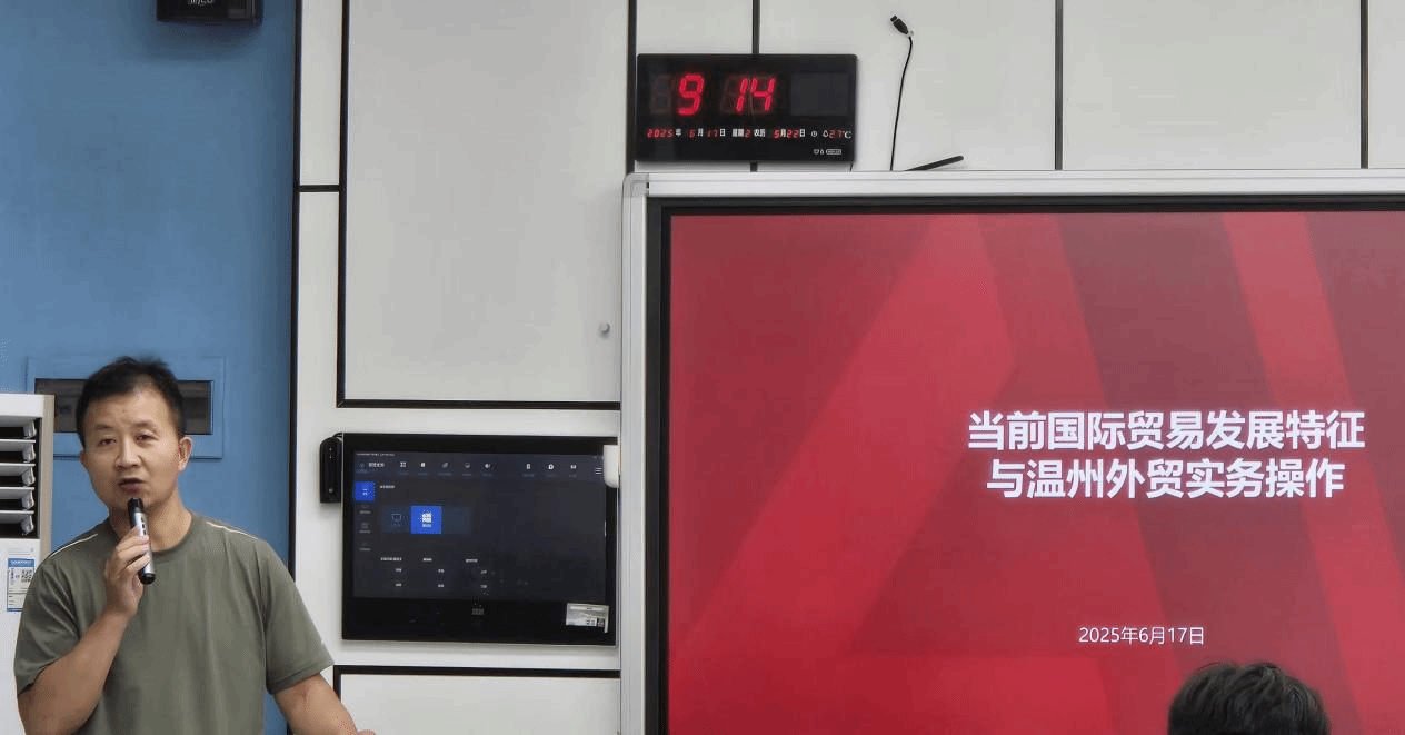 6月17日,温州大学商学院教室座无虚席,温州贸促会钟国强主任受邀为国际贸易专业学子开展“当前国际贸易发展特征与温州外贸实务操作”专题讲座,以行业一线视角,为同学们解码外贸前沿趋势与实操要点。
