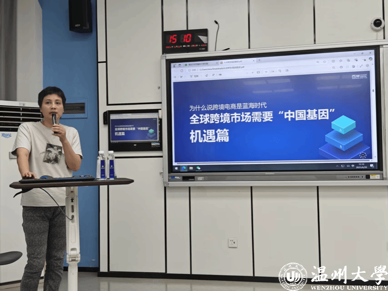 为进一步优化教育教学内容,提升学生专业素养,深入了解国际贸易的最新发展趋势和面临的挑战,把握行业脉搏,拓宽专业视野,2025年6月20日,资深跨境电商专家叶小鹏先生莅临我校,为商学院24级国贸专业学生带来了一场主题为“跨境电商的蓝海时代”的专题讲座,吸引了众多师生前来聆听。本场讲座为温州大学商学院国贸专业的学生们提供了一个了解行业、提升素养、激发热情的重要平台,帮助他们更好地适应市场需求和社会发展,为未来的职业生涯打下坚实基础。