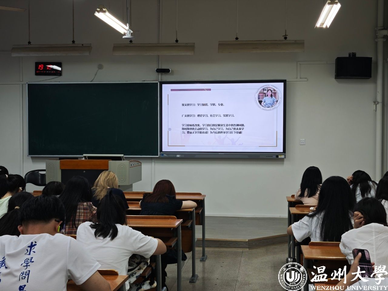 为帮助2025级新生更好地适应大学生活,缓解入学后的心理困惑,10月10日晚,温州大学商学院组织学生在各教室线上开展大学生心理适应性专题讲座。温州大学学工部副部长吕乐、心理健康教育中心主任余如英、心理教研室主任廖传景、心理咨询师张海音四位老师联合授课,为400余名新生送上“心理适应锦囊”。