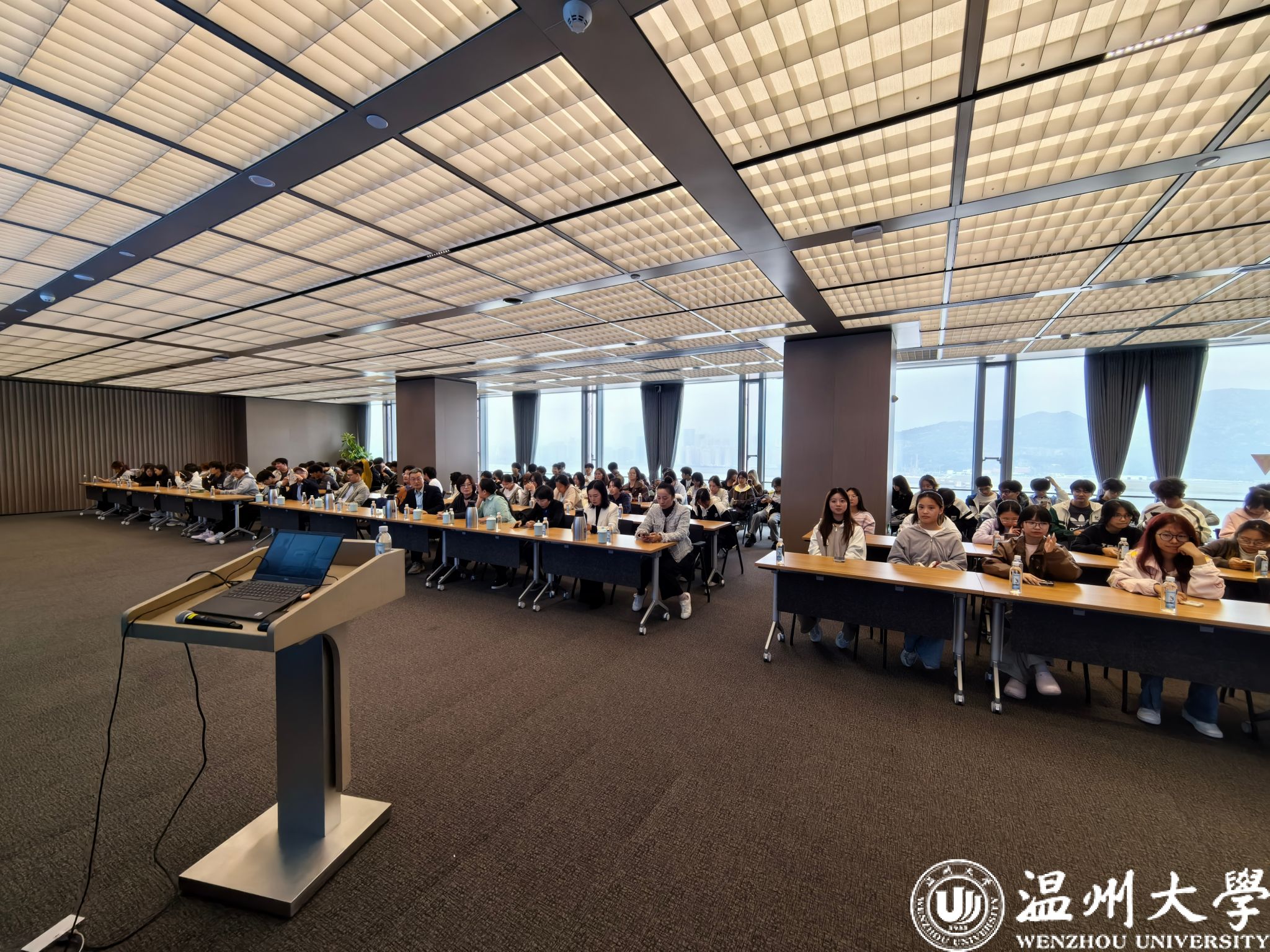 2025年11月7日下午,金融工程专业的大一新生迎来了第一次专业见习机会,他们在温大商学院副院长王露、金融工程系主任林德根、王小锋老师、吉云老师、周建华老师、王芳芳老师、龚军姣老师、郑慧老师的带领下,来到了泰隆银行御江大厦进行实地参观学习。此次活动旨在使同学们了解泰隆银行其发展历史,了解其特色小微金融,此外要了解入住泰隆御江大厦的金融类企业,比如证券、期货、保险、金融科技等公司。